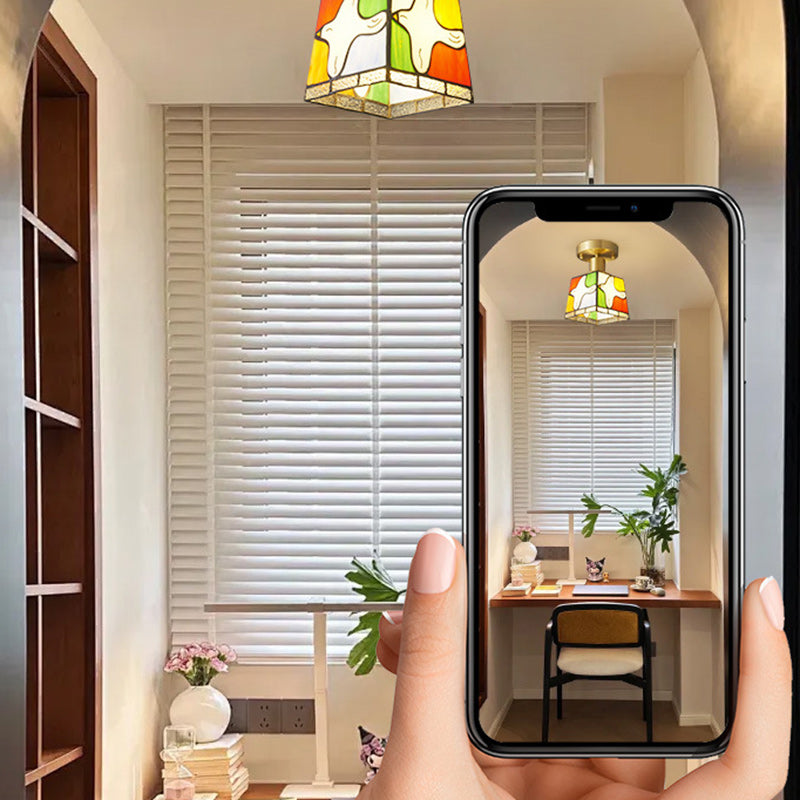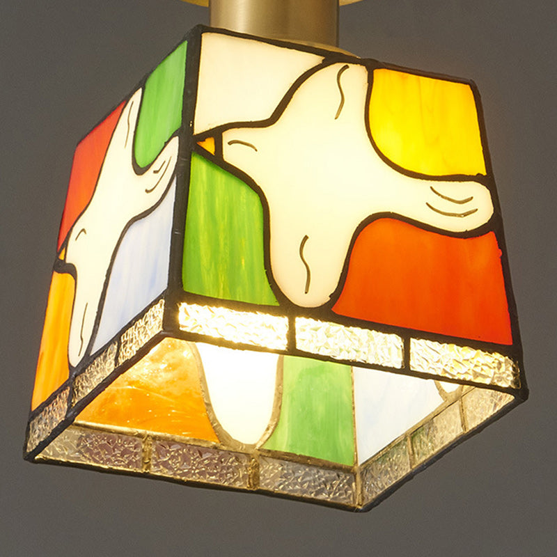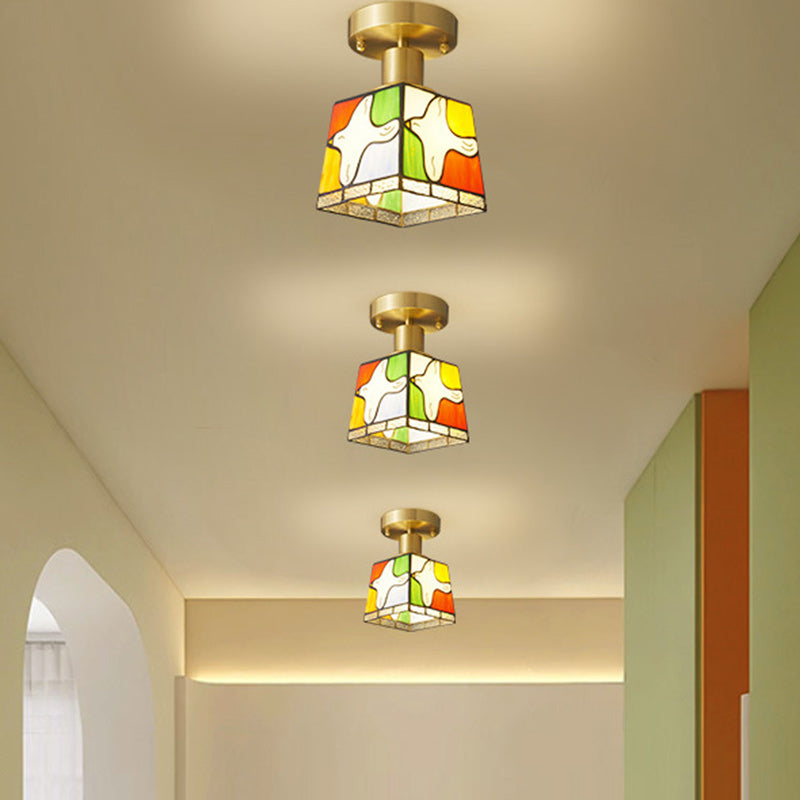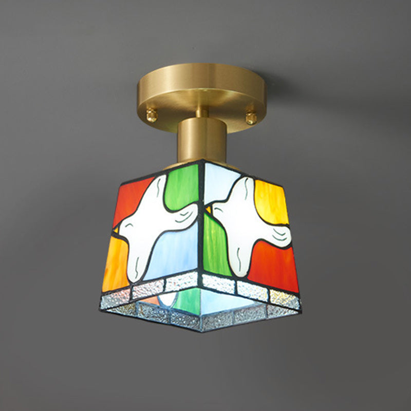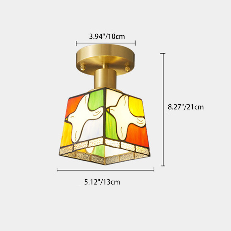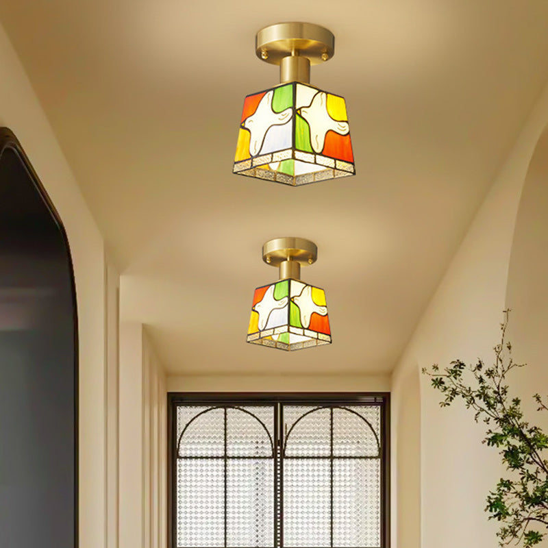 مصباح سقف عصري من منتصف القرن بتصميم حمامة السلام بإطار نحاسي كامل وغطاء زجاجي، مصباح واحد، مثبت بشكل شبه مسطح، لغرفة المعيشة