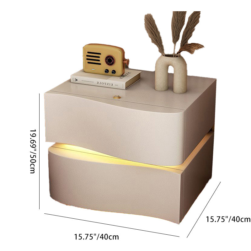 Modern Minimalist Ambiance Light Square Rectangle Wood Nightstand 2/3 Drawer For Bedroom