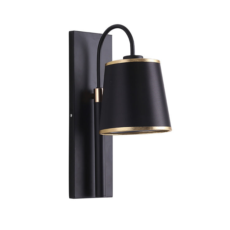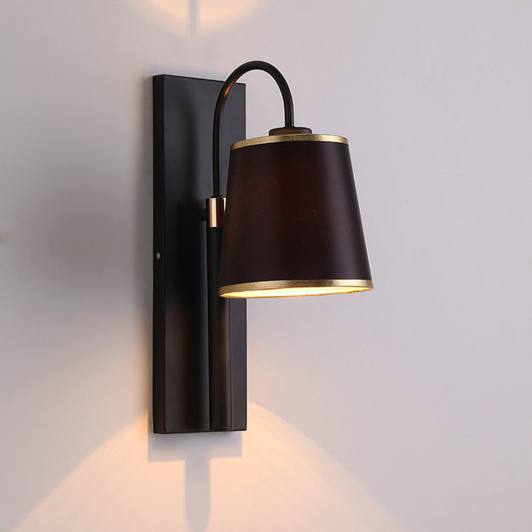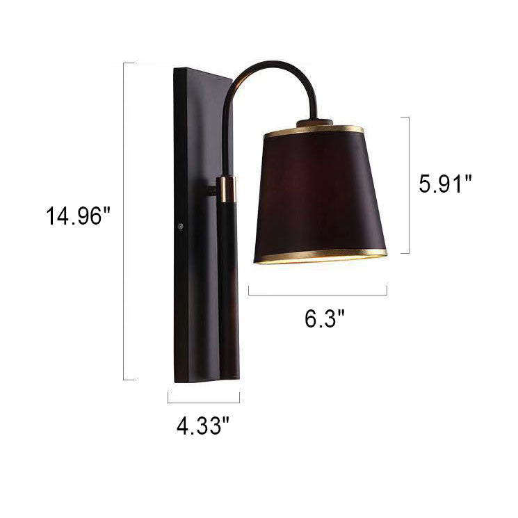 مصباح حائطي حديث بسيط مصنوع من قماش مخروطي أسود مزود بإضاءة واحدة