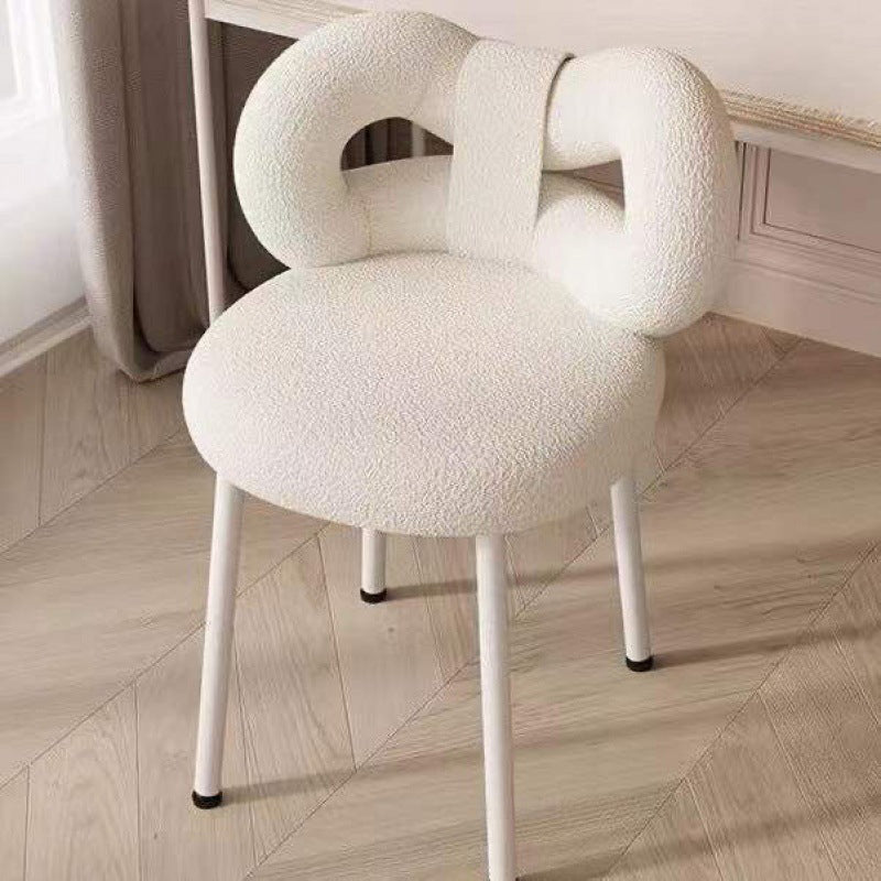 Modern Minimalist Bow Back Lambswool Carbon Steel Vanity Stool Backrest For Bedroom