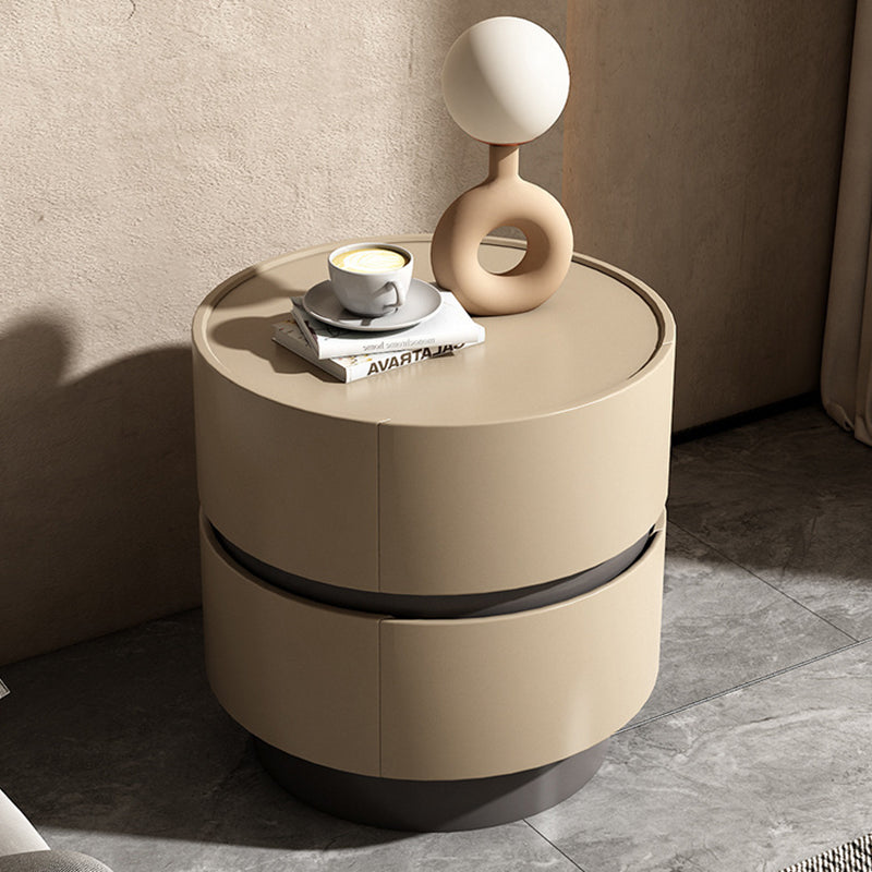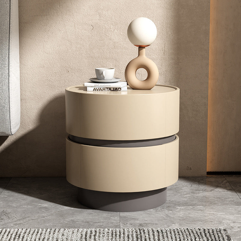 Modern Minimalist Cylinder Frame Solid Wood Nightstand 2-Drawer For Bedroom