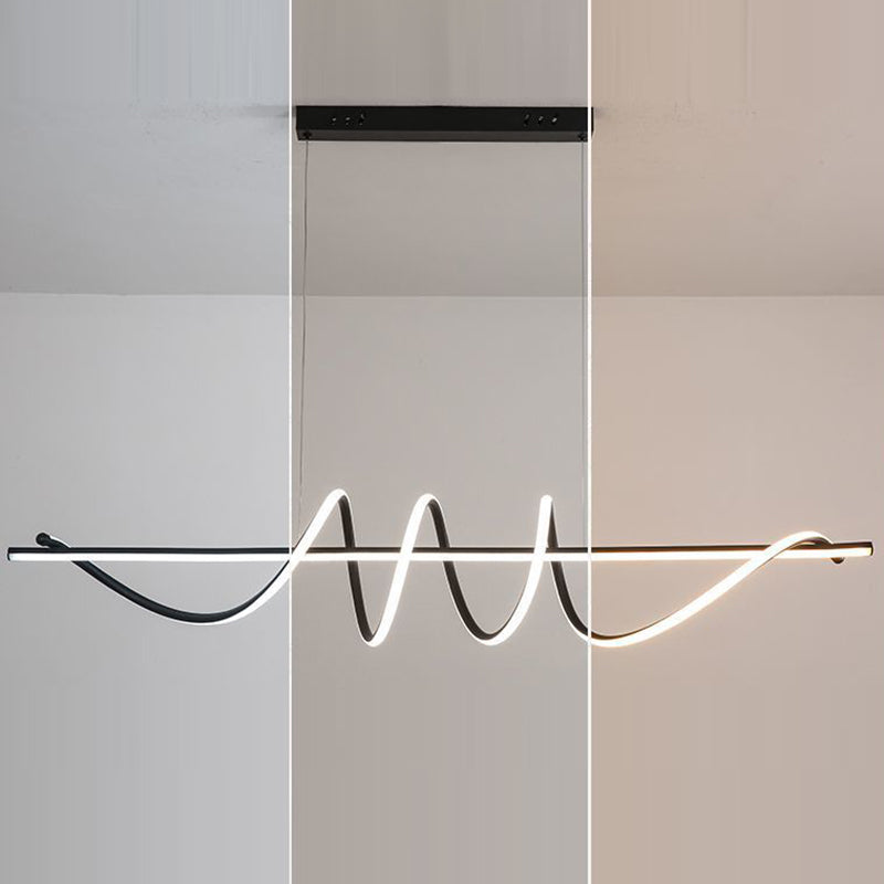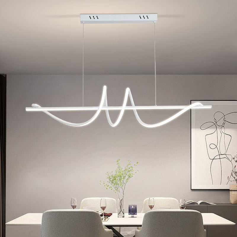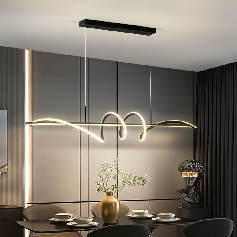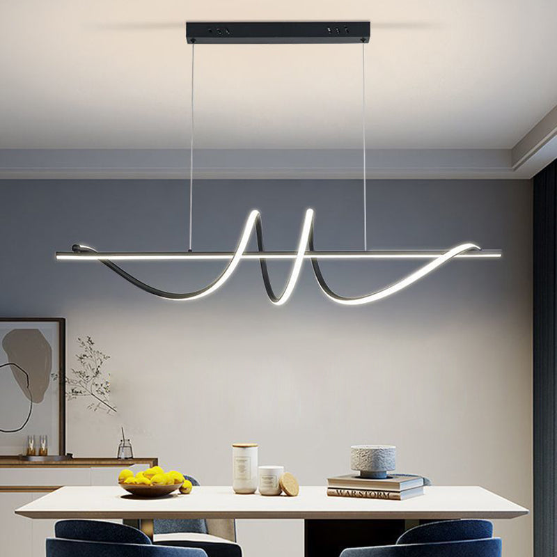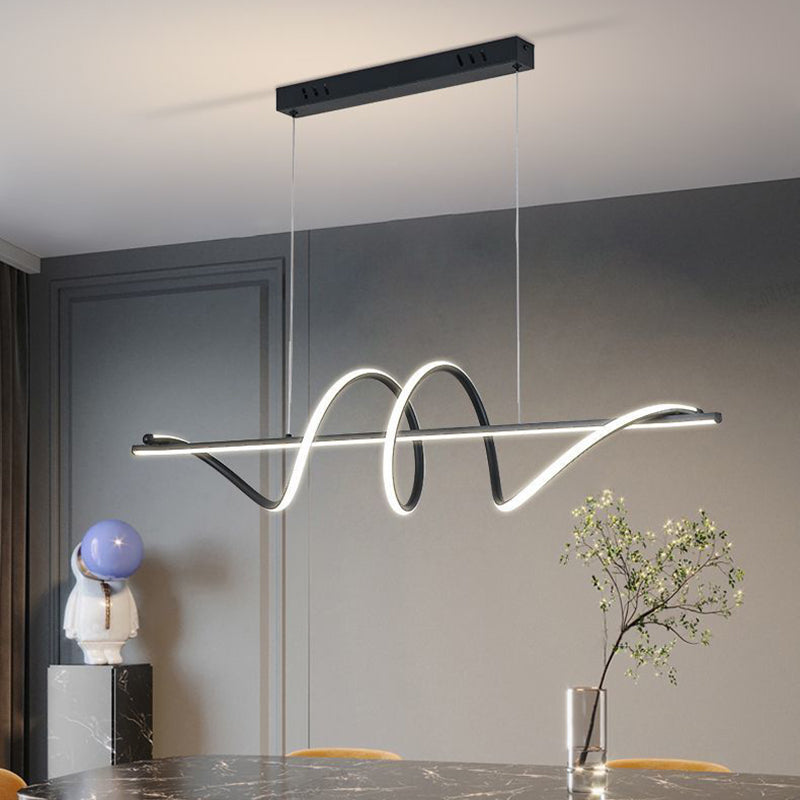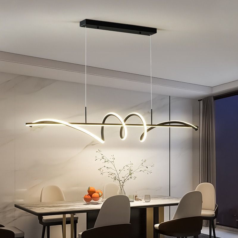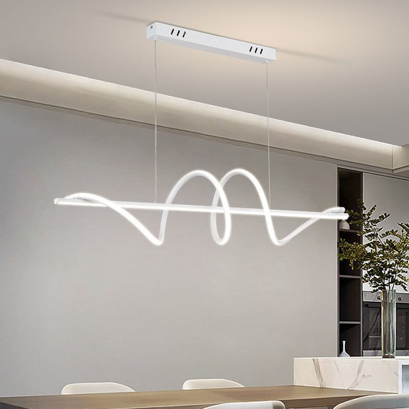 مصباح معلق LED من الأكريليك والألومنيوم والحديد طويل حلزوني الشكل بتصميم بسيط وحديث لغرفة الطعام