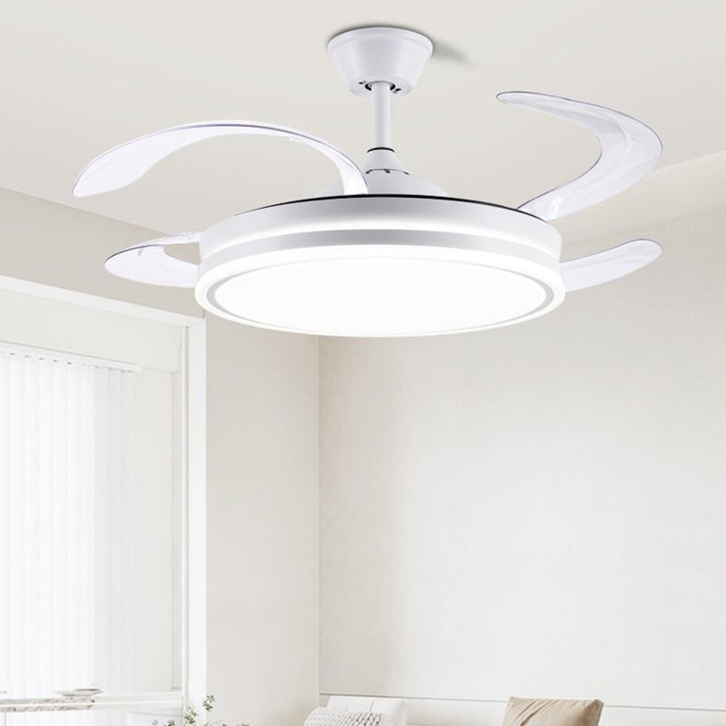 مروحة سقف LED مخروطية الشكل دائرية معدنية أكريليك حديثة بسيطة لغرفة المعيشة