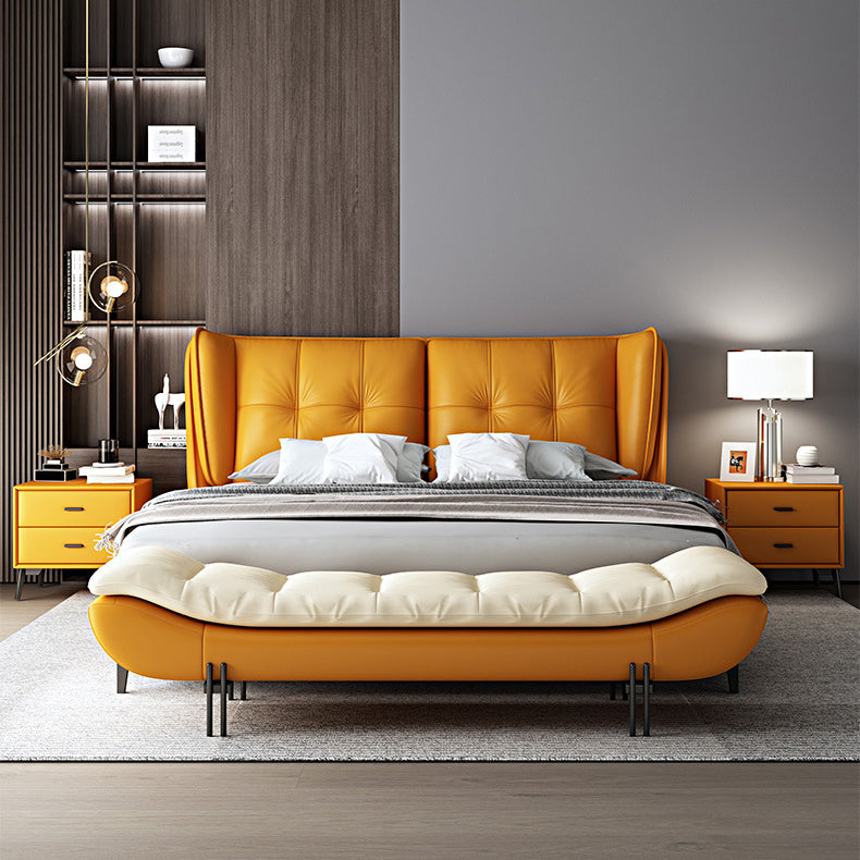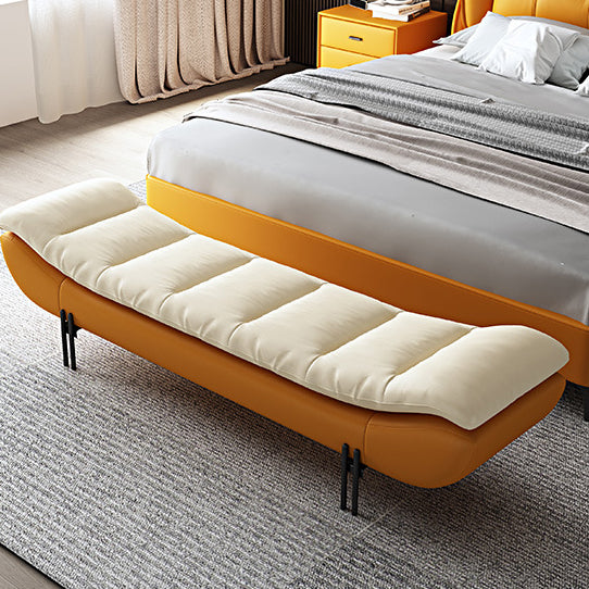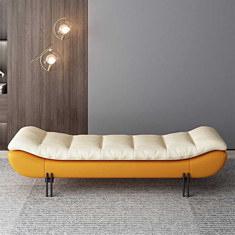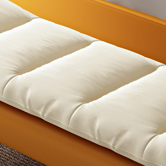 Made with luxurious Nappa leather, plush down filling, solid wood frame, and sleek steel legs, this modern rectangular bench combines comfort and durability. Available in orange, beige, and blue, it's perfect for adding a refined, minimalist touch to your bedroom or entryway.