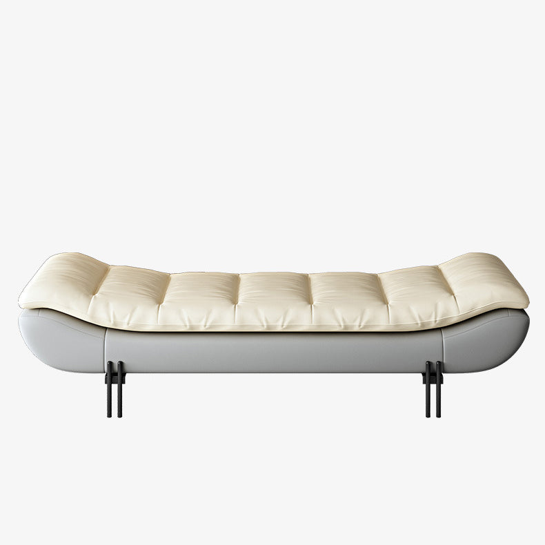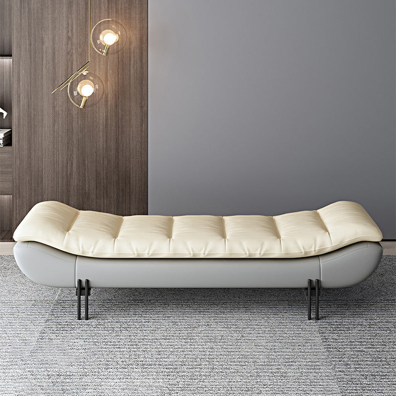 Modern Minimalist Nappa Leather Down Steel & Solid Wood Rectangular Bench For Bedroom & Entryway