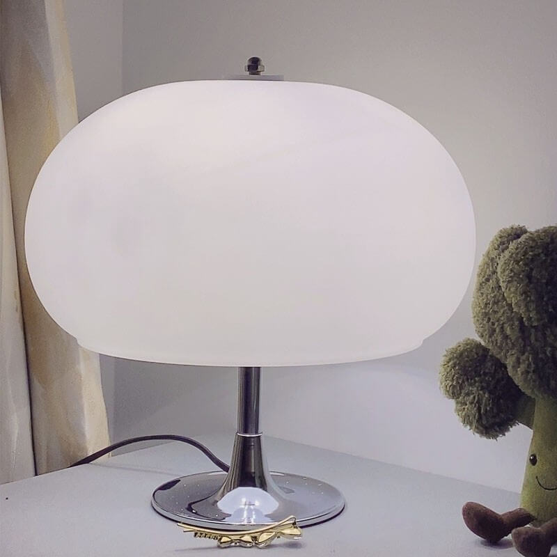 Modern Minimalist Oval Mushroom Iron Glass 3-Light Table Lamp