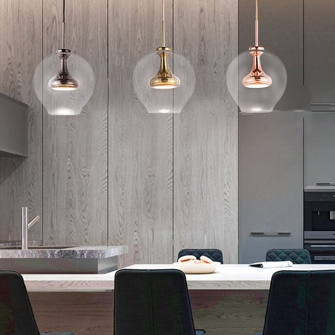 مصباح معلق LED زجاجي بيضاوي الشكل بتصميم عصري بسيط مزود بمصباح واحد