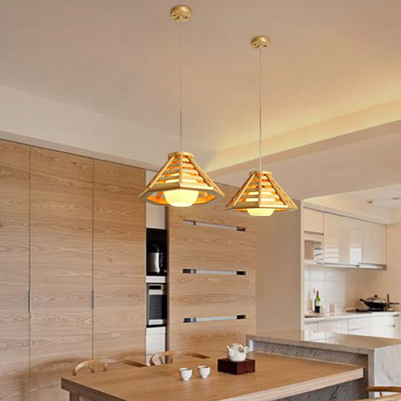 مصباح معلق حديث بسيط من الخشب والزجاج لغرفة الطعام