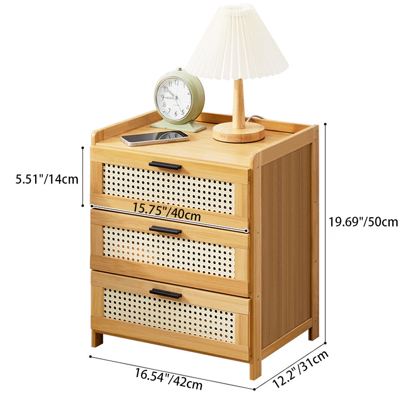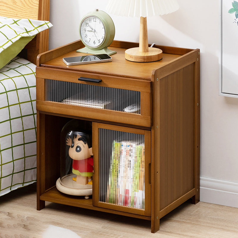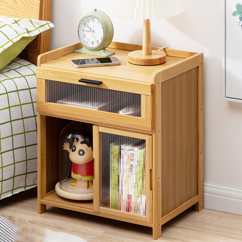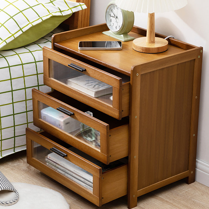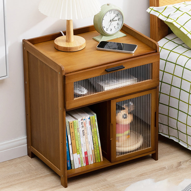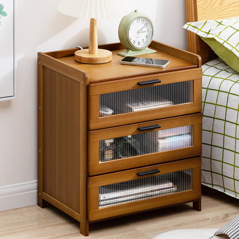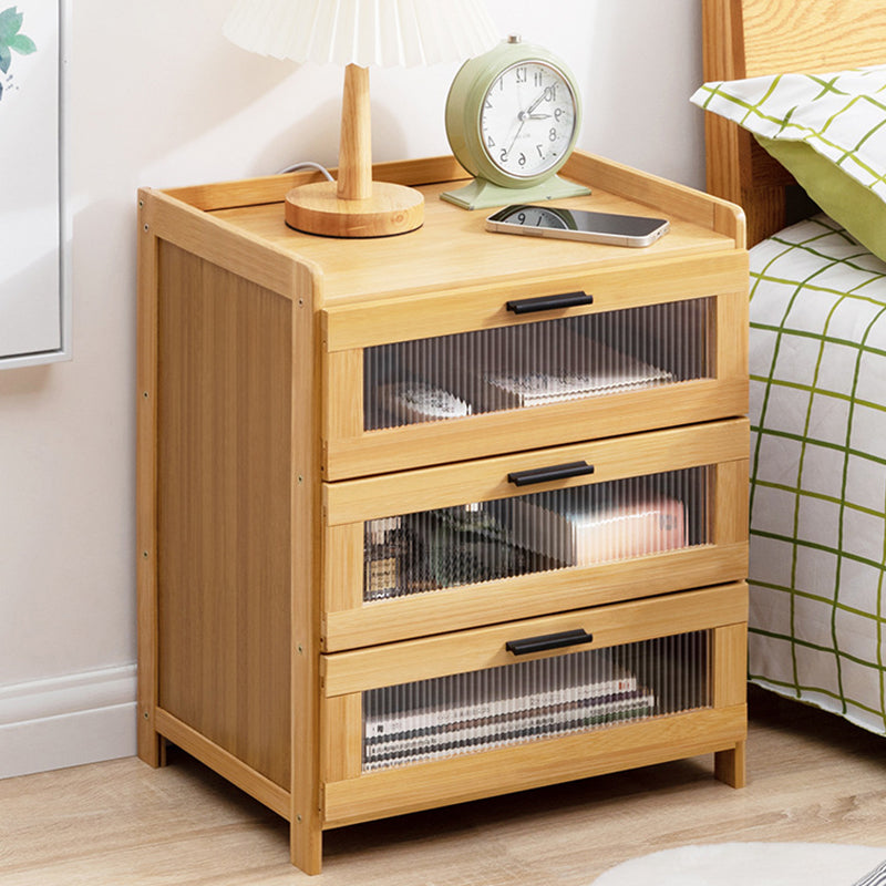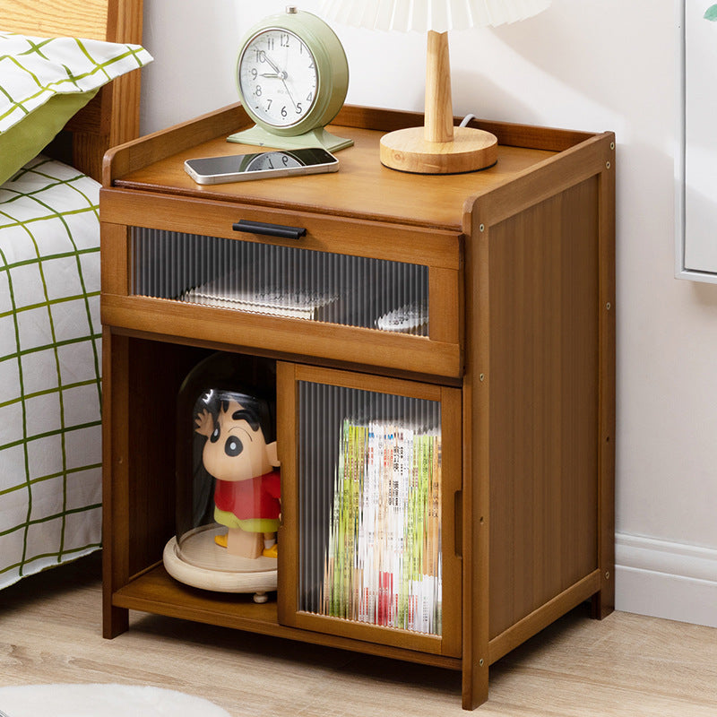 Modern Minimalist Rectangle Bamboo Glass Plastic Nightstand 1/3 Drawer For Bedroom