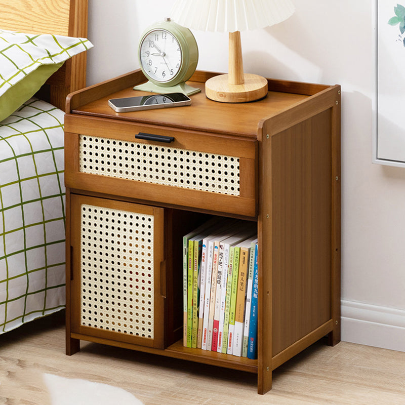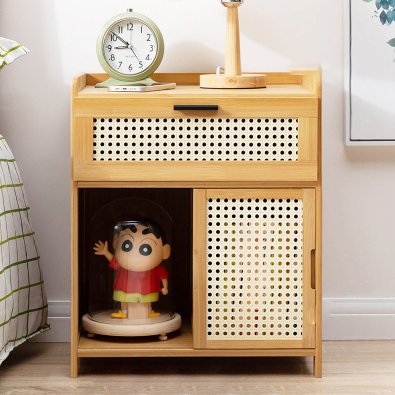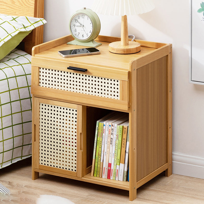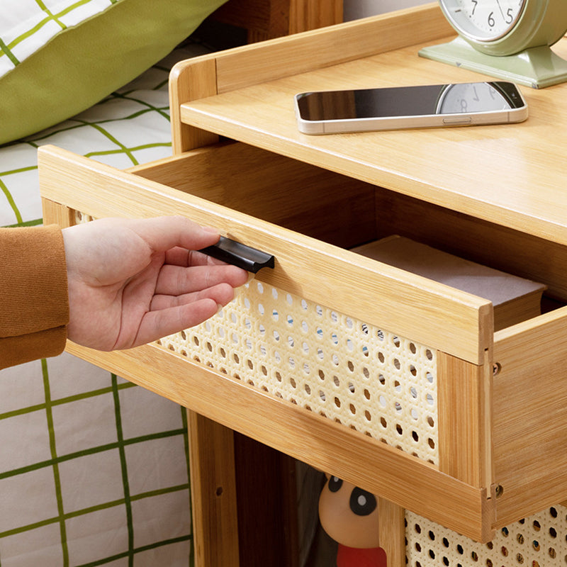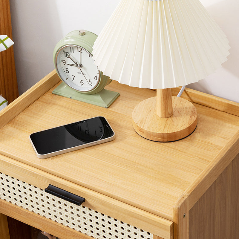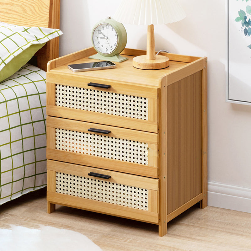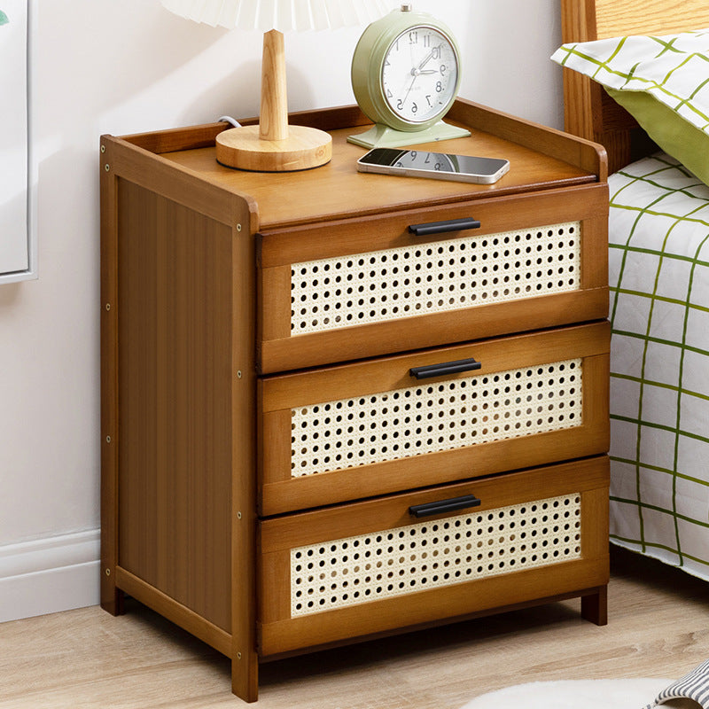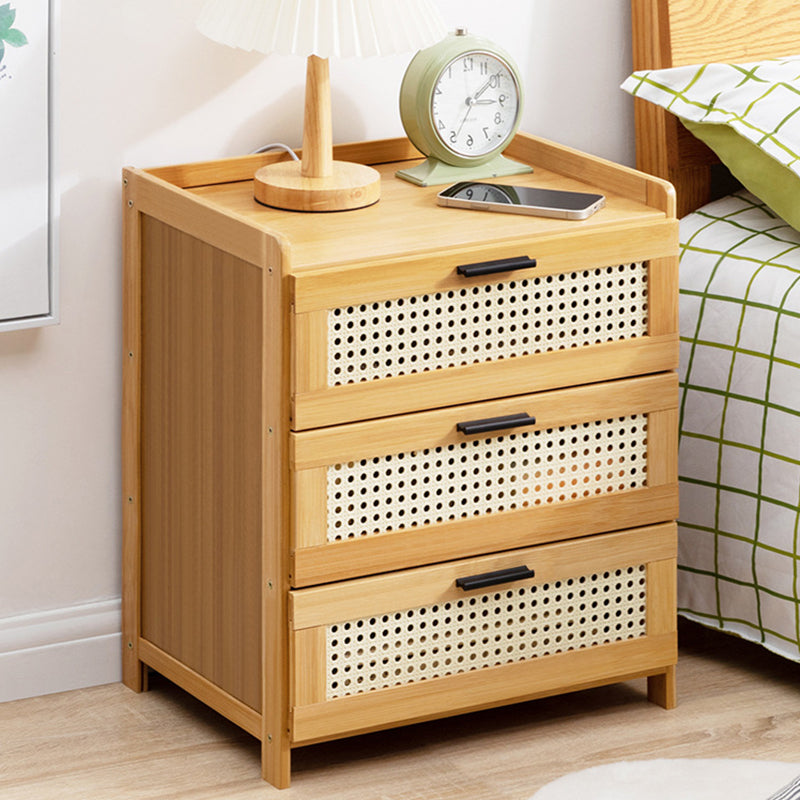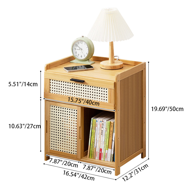 Modern Minimalist Rectangle Bamboo Glass Plastic Nightstand 1/3 Drawer For Bedroom