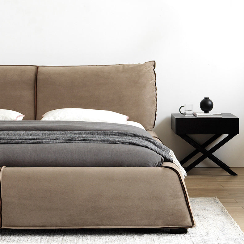 طاولة بجانب السرير بتصميم عصري بسيط مستطيلة الشكل مصنوعة من خشب الدردار متوسط الكثافة مع درج واحد لغرفة النوم
