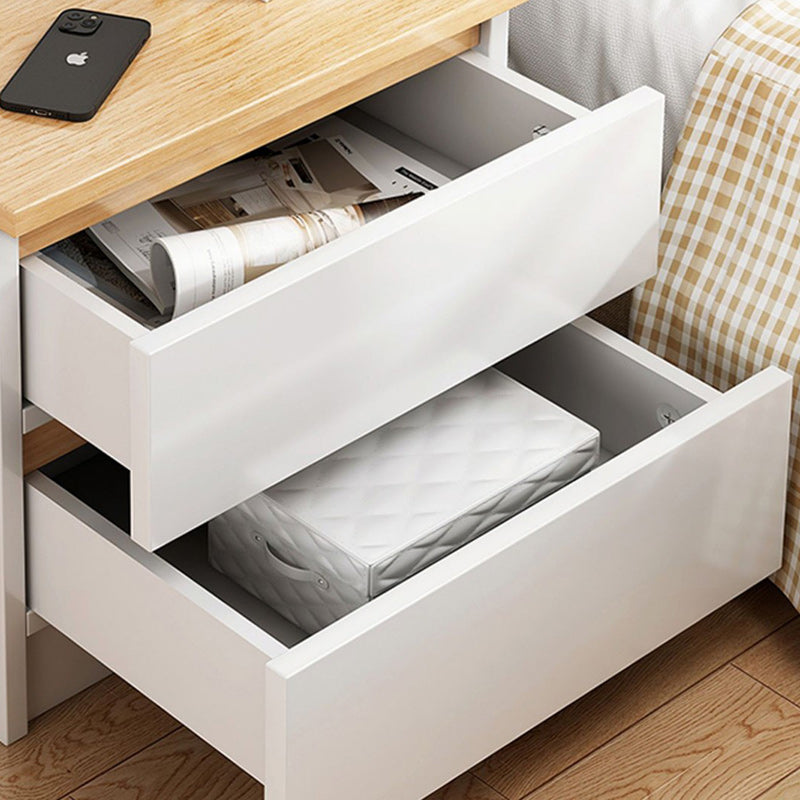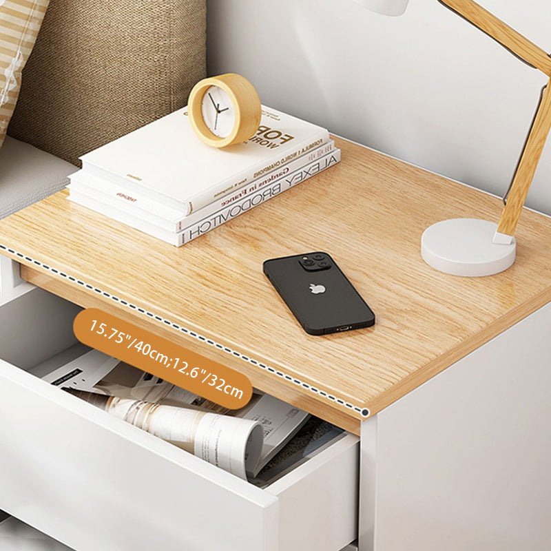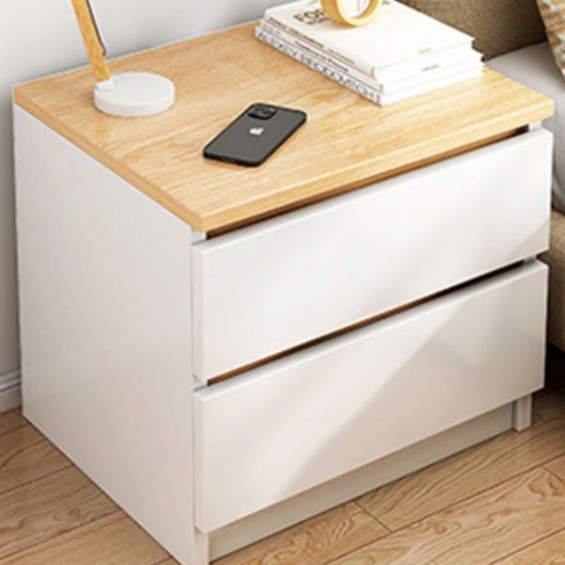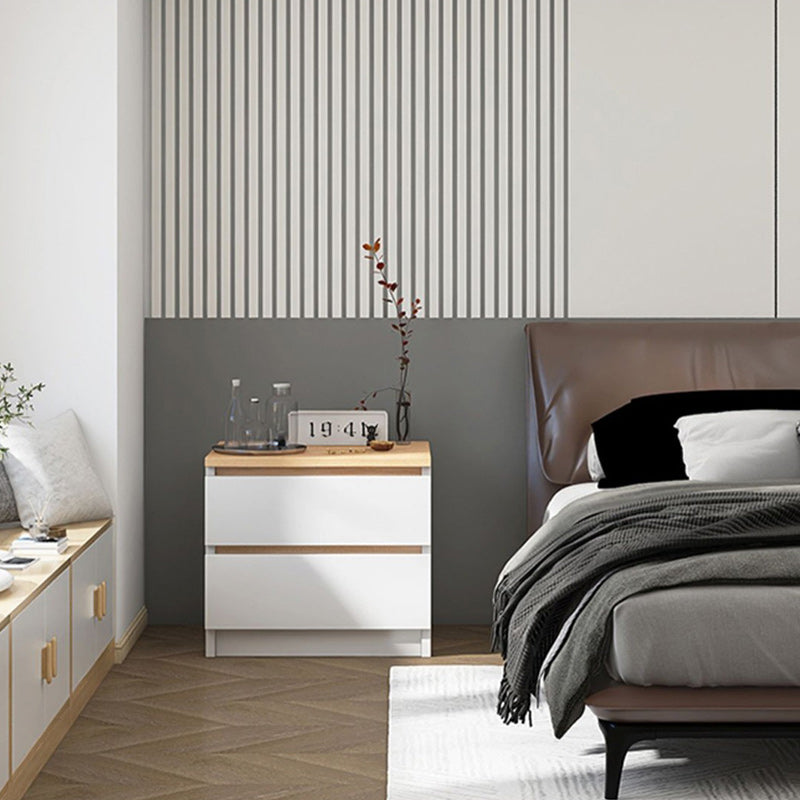 Modern Minimalist Rectangular Faux Panel Nightstand 2-Drawer For Bedroom