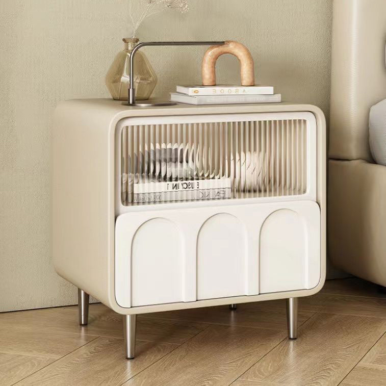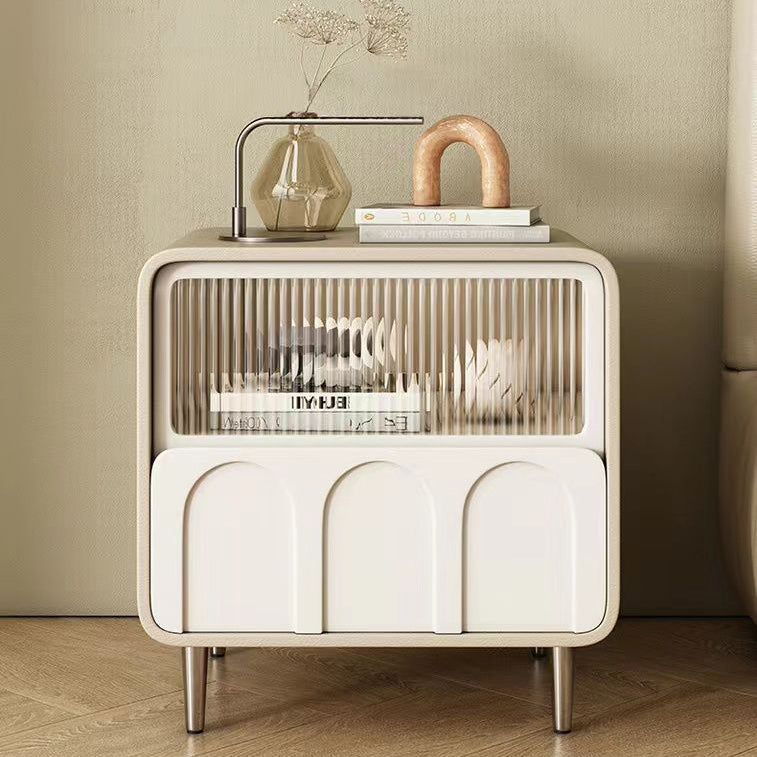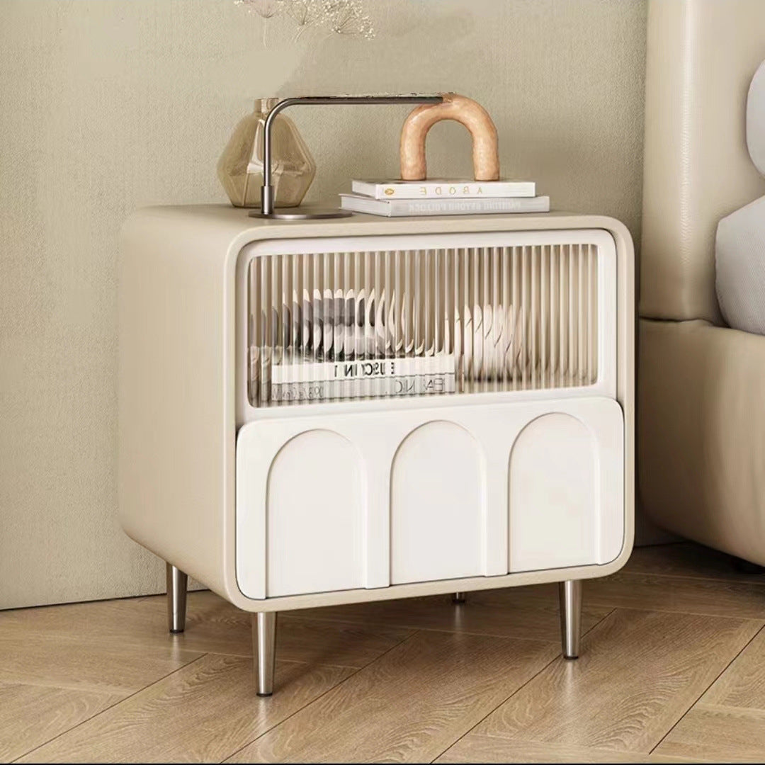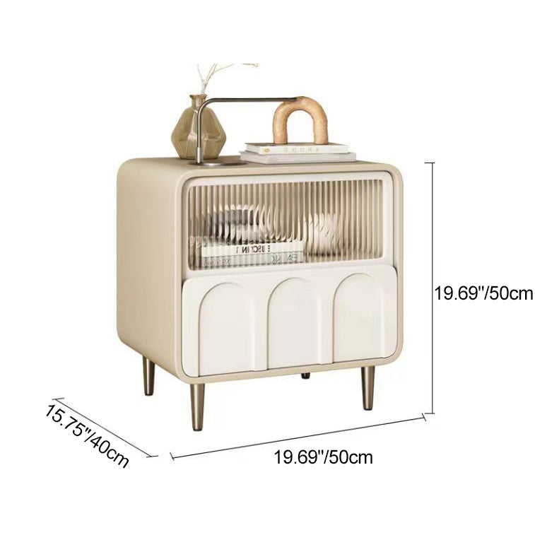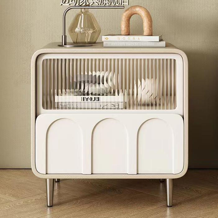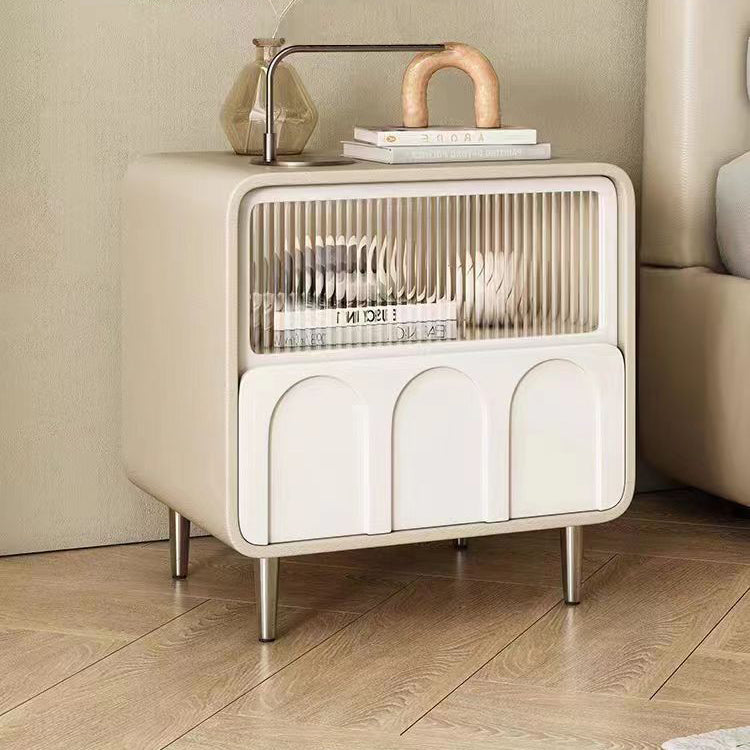 Modern Minimalist Rectangular Glass Solid Wood Panel Nightstand 2-Drawer For Bedroom
