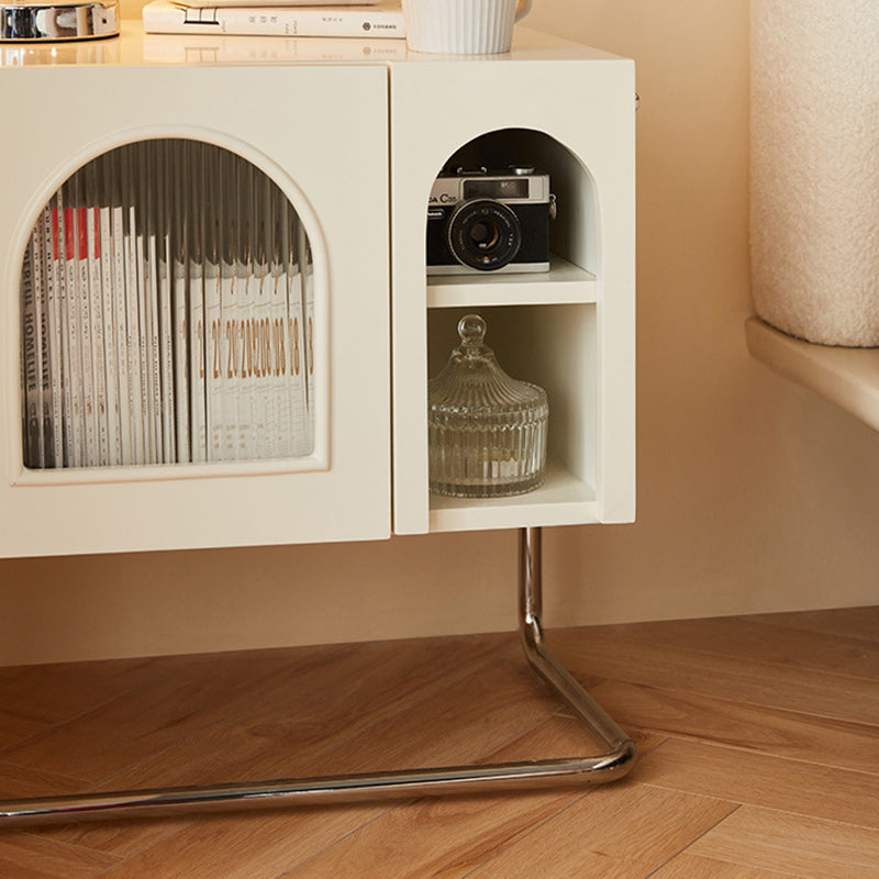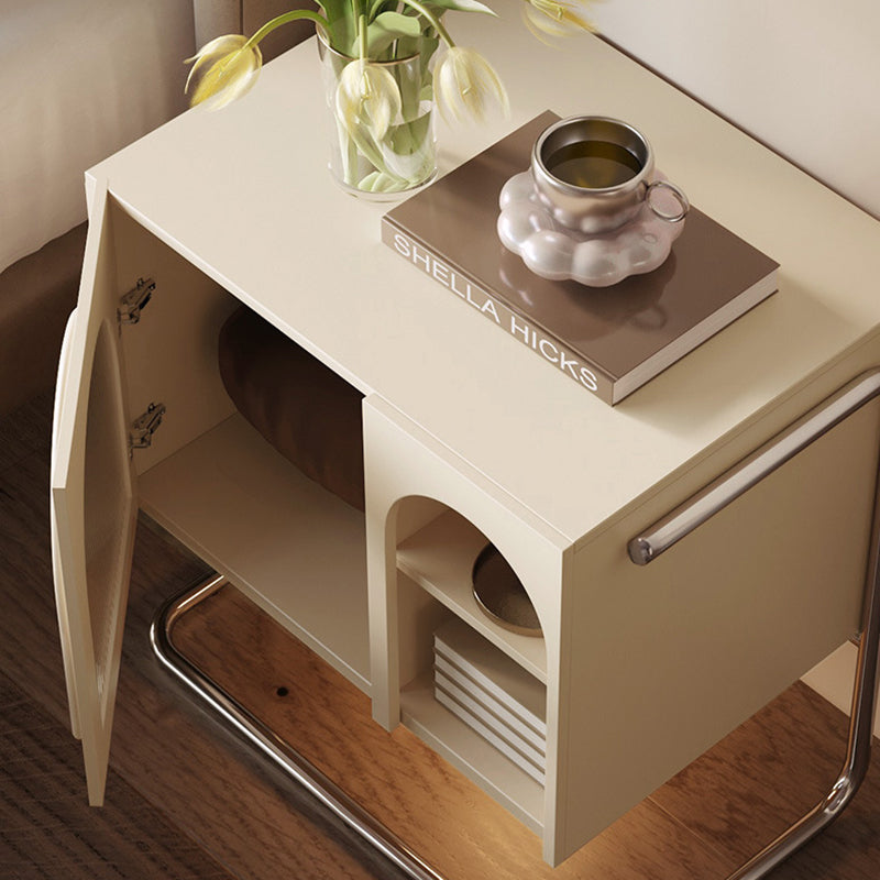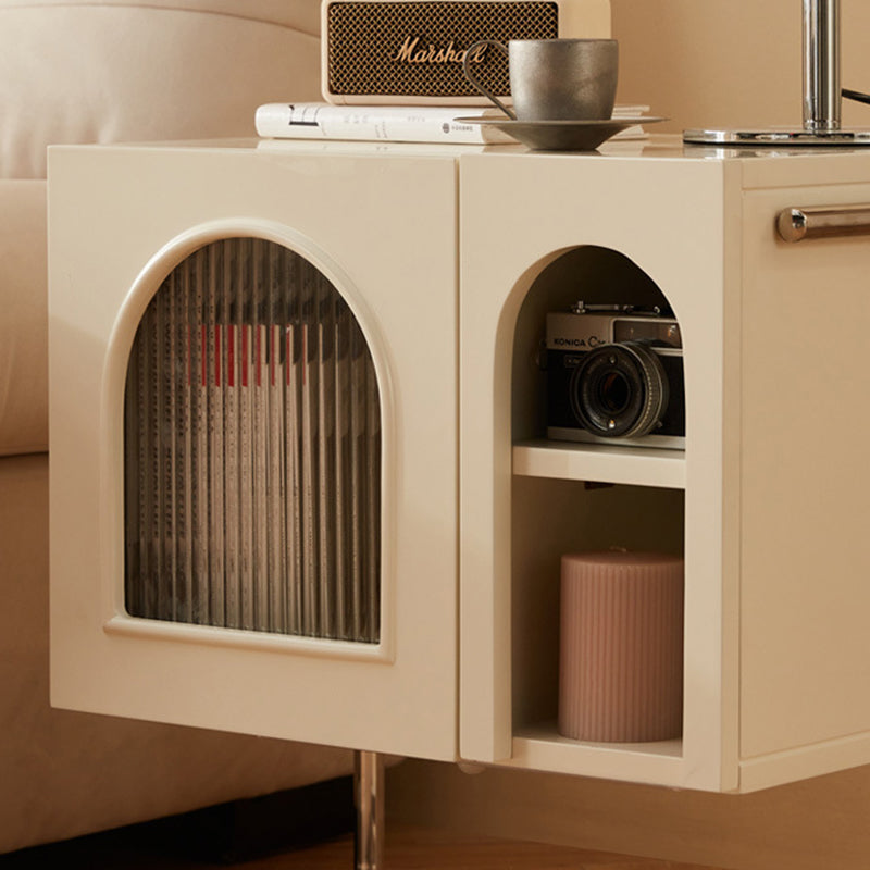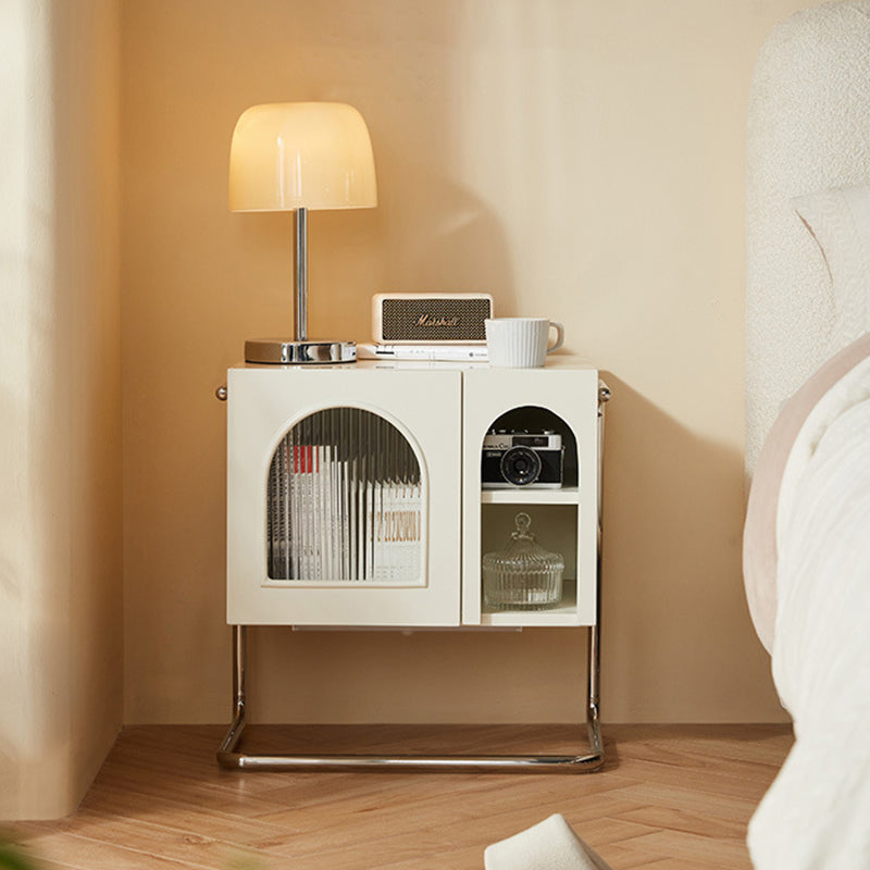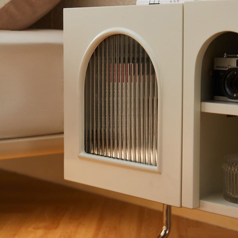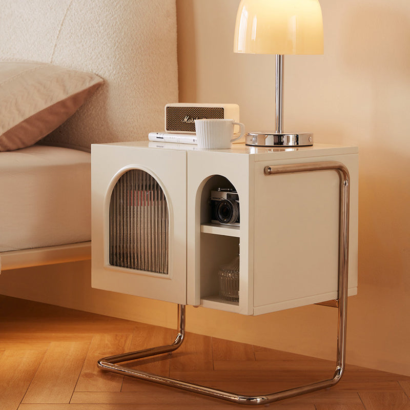 Modern Minimalist Rectangular Glass Wood-Based Panel Stainless Steel Nightstand 3-Cabinet For Bedroom