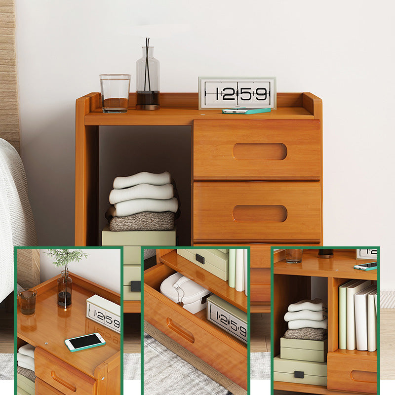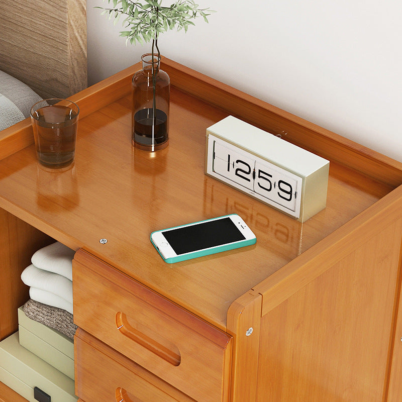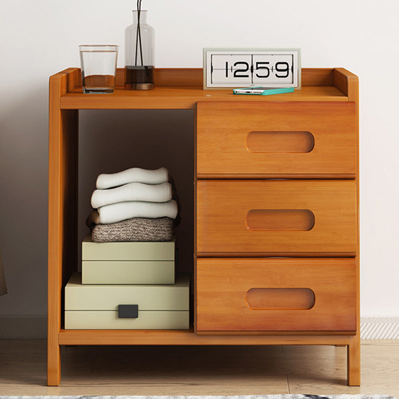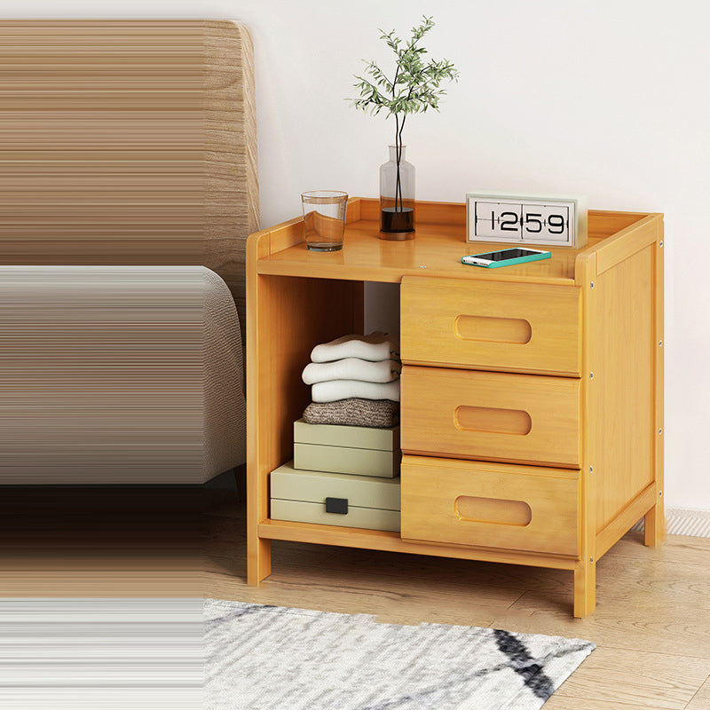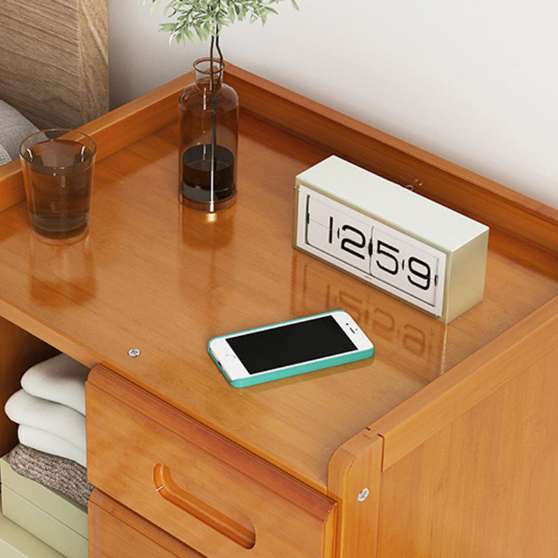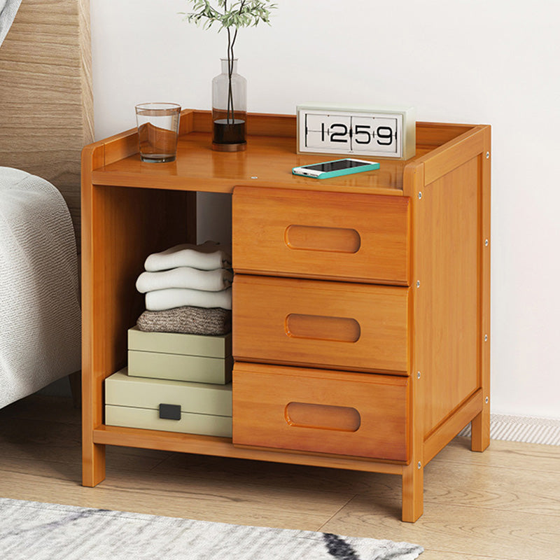 Modern Minimalist Rectangular Nan Bamboo Density Board Nightstand 1/3 Drawer For Bedroom