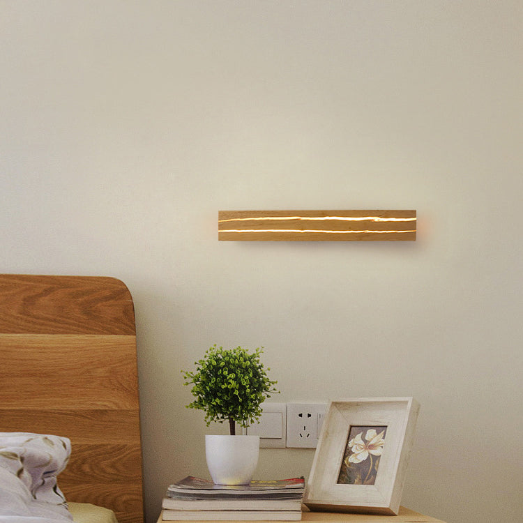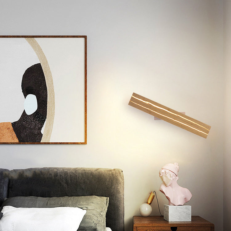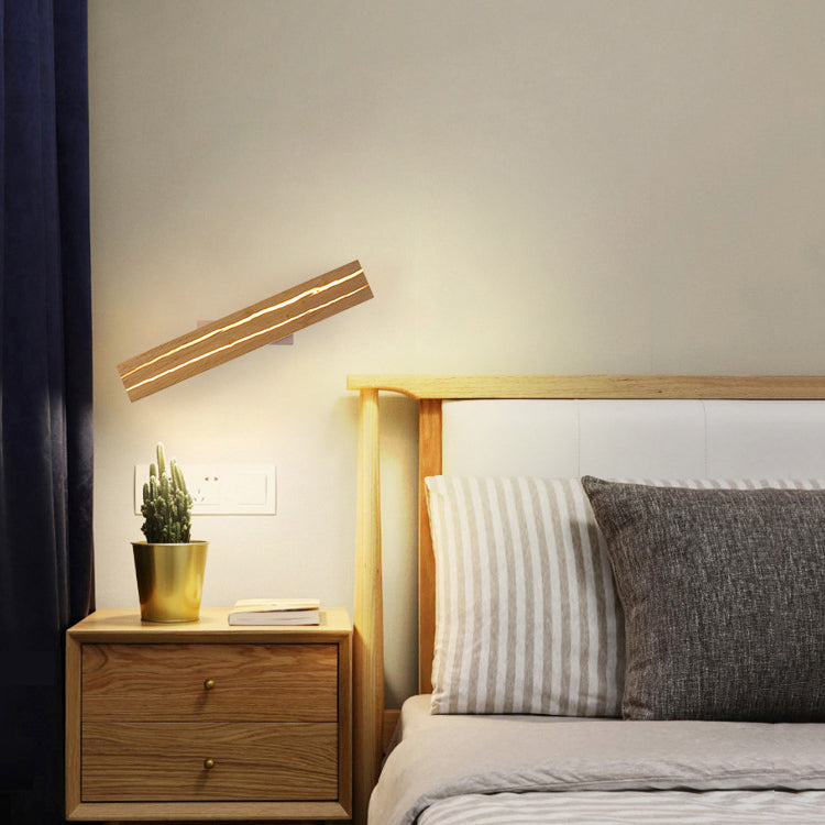 مصباح حائط LED بتصميم مستطيل دوار بسيط وعصري لغرفة النوم مصنوع من خشب متشقق مصنوع من الحديد