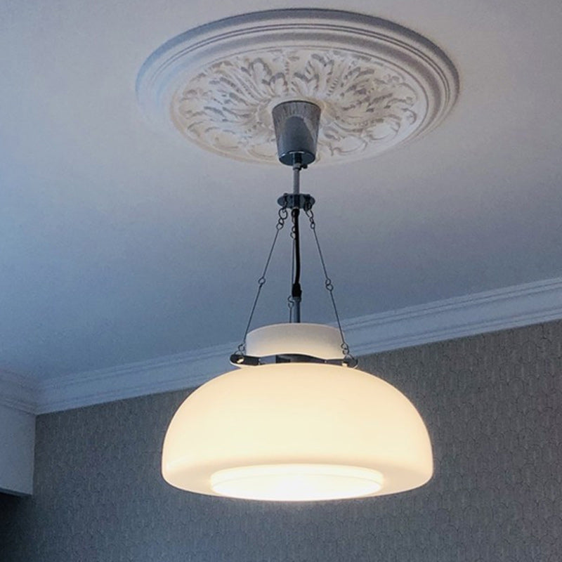 مصباح معلق حديث بسيط من الحديد والزجاج على شكل مخروط دائري لغرفة الطعام