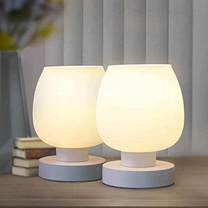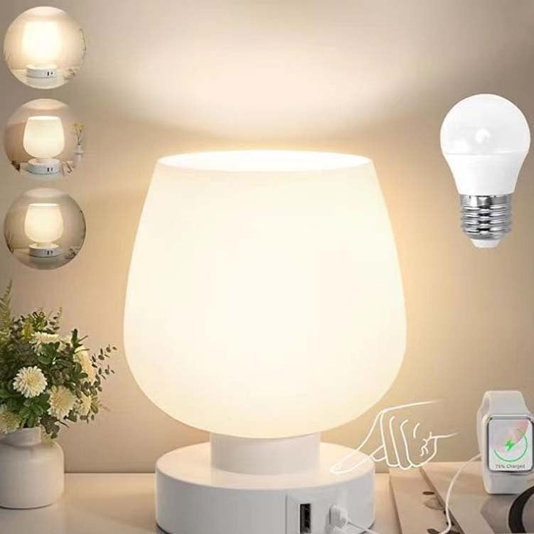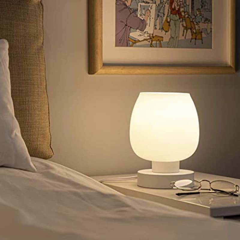 Modern Minimalist Round Glass Shade Iron Base 1-Light Table Lamp For Bedroom