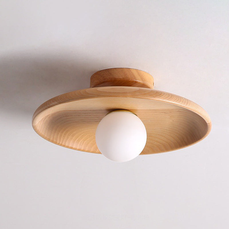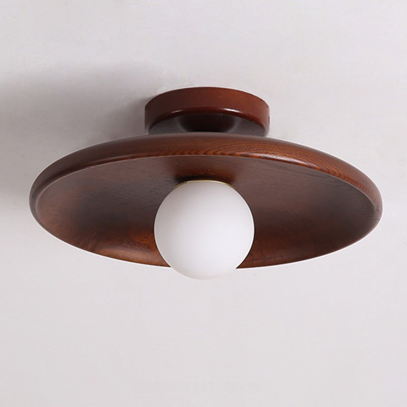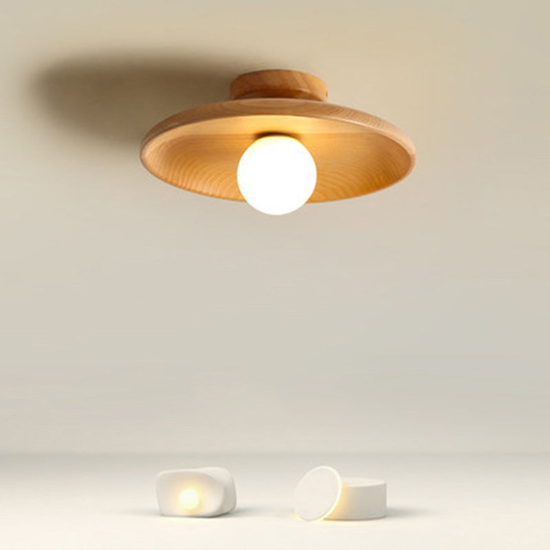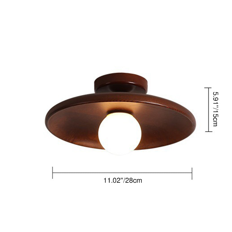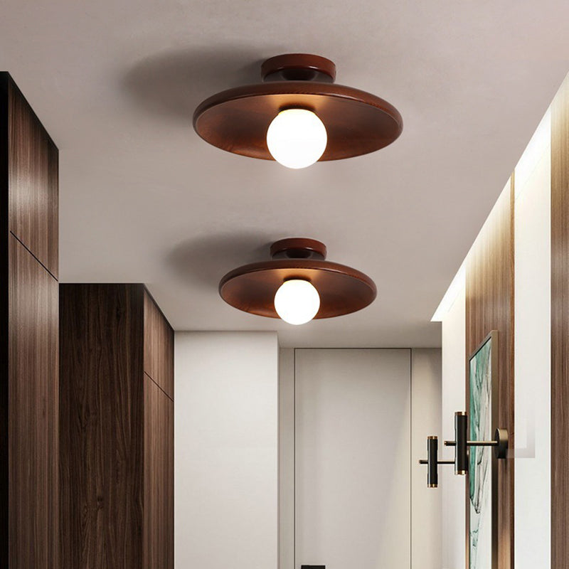 مصباح سقف دائري عصري بسيط من الخشب الصلب مزود بمصباح واحد وتركيب شبه مسطح للمدخل