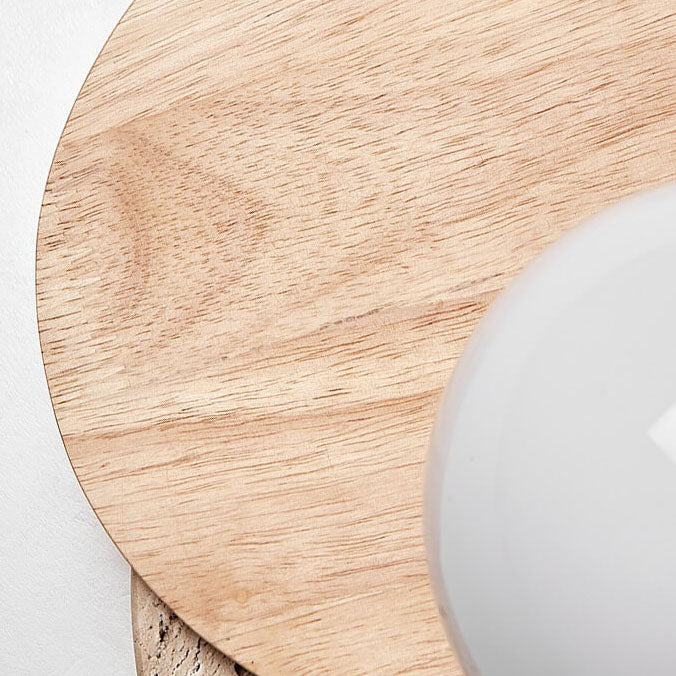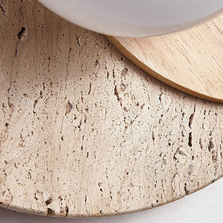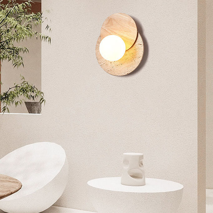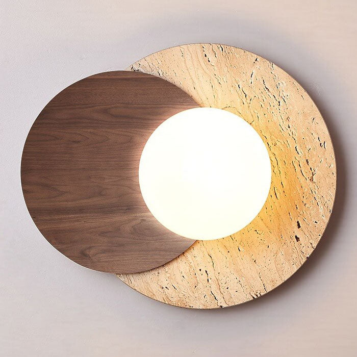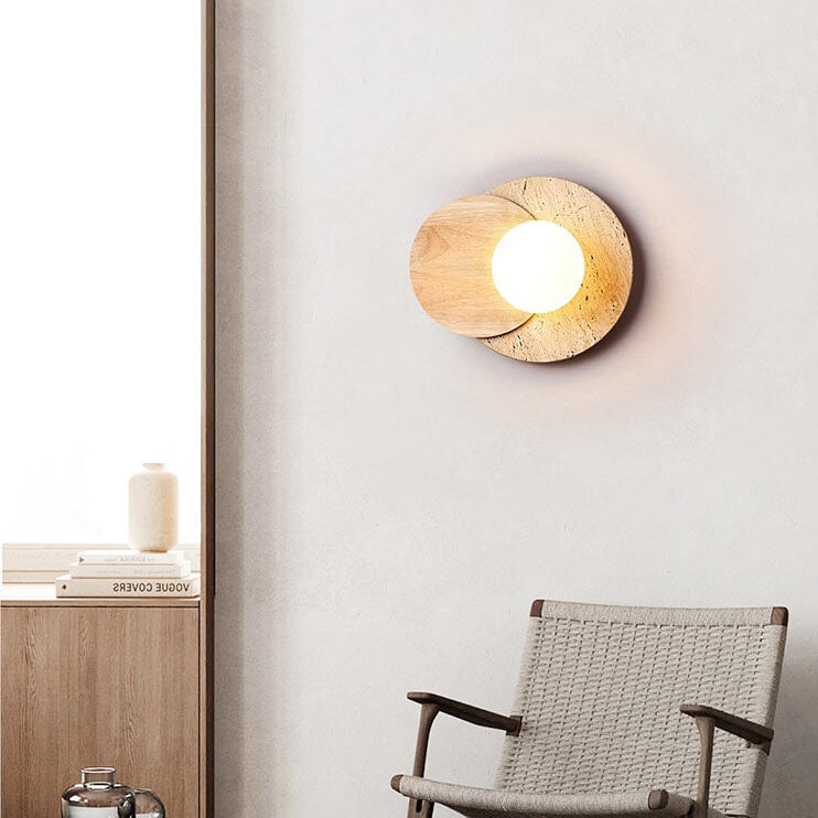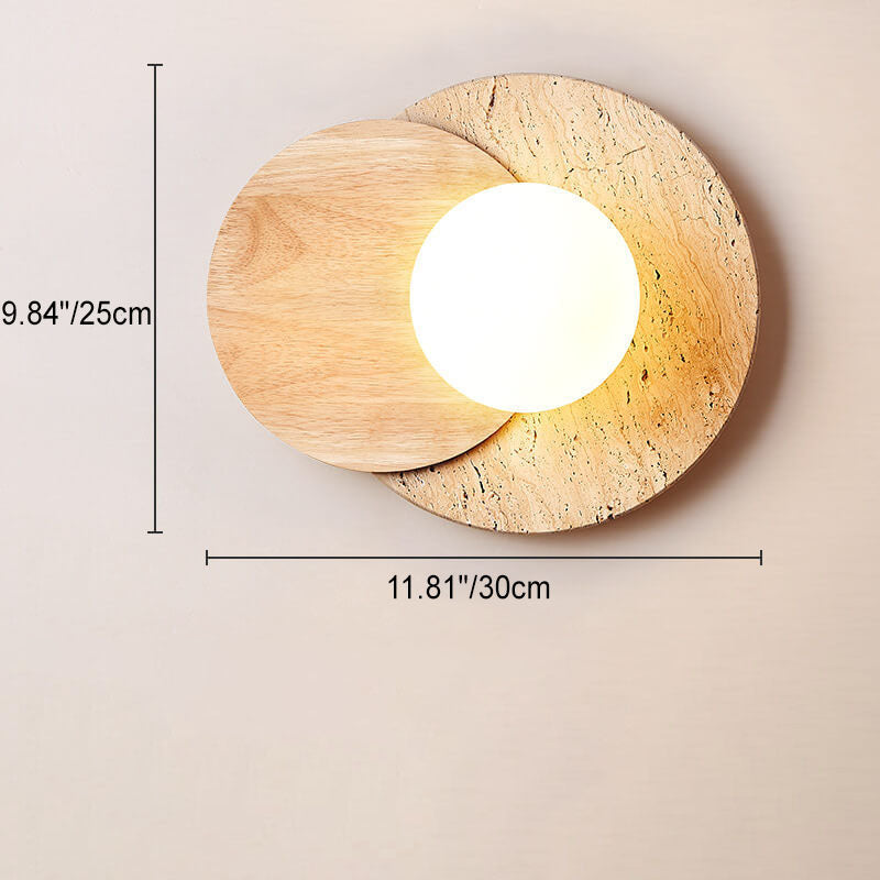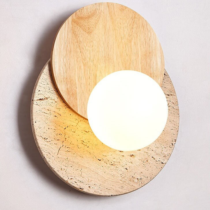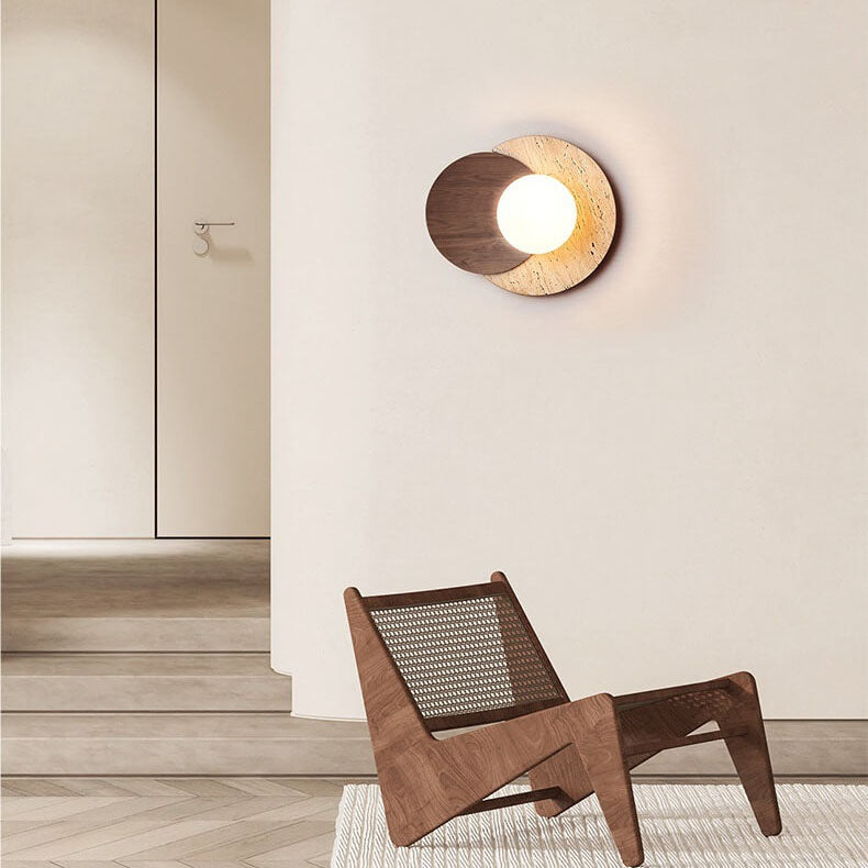 مصباح حائط دائري عصري بسيط من الخشب والحجر مزود بمصباح واحد