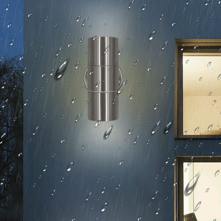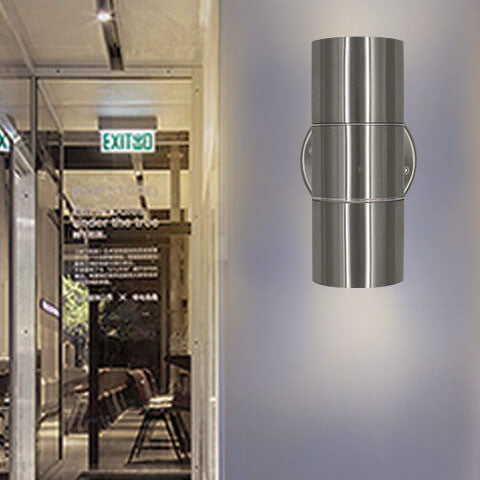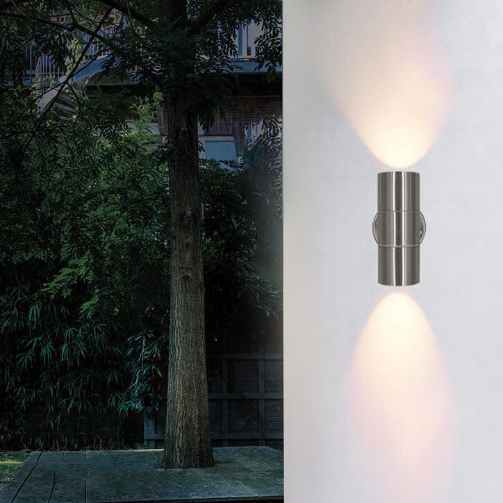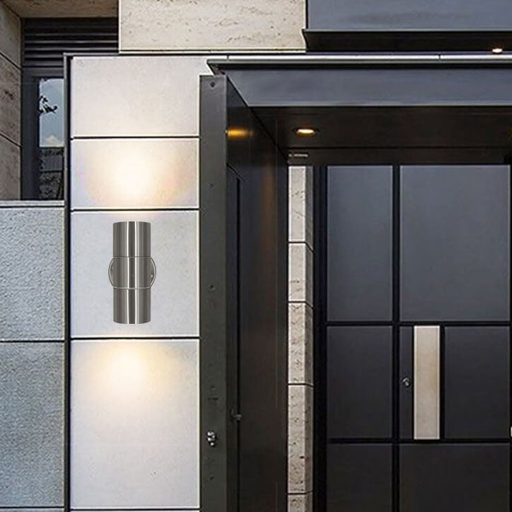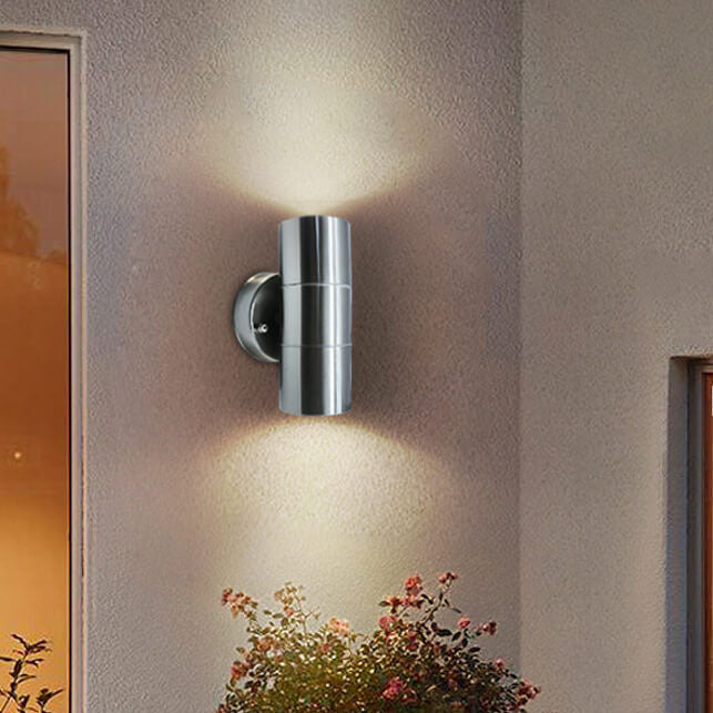 مصباح حائط أسطواني حديث بسيط من الفولاذ المقاوم للصدأ مزود بمصباحين