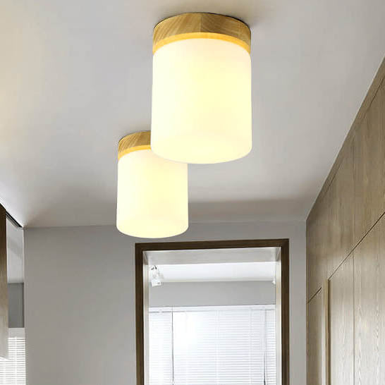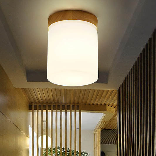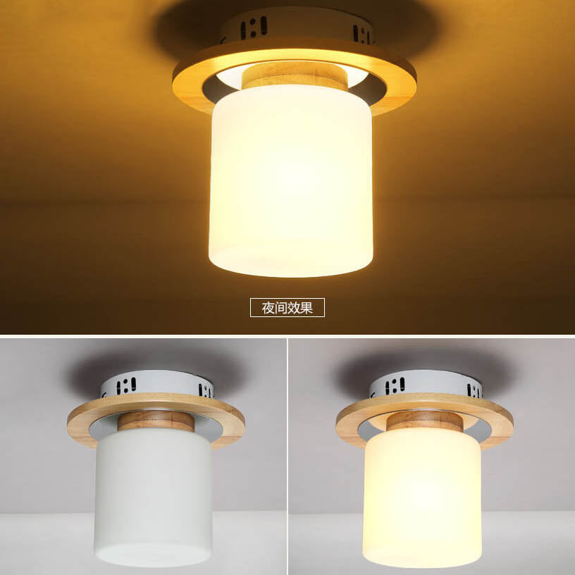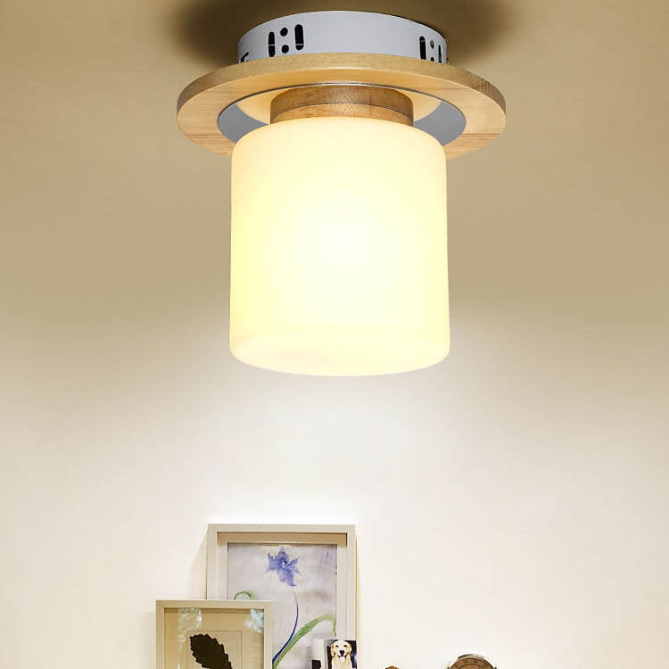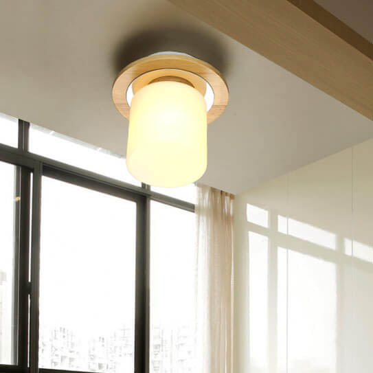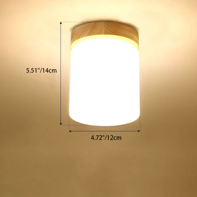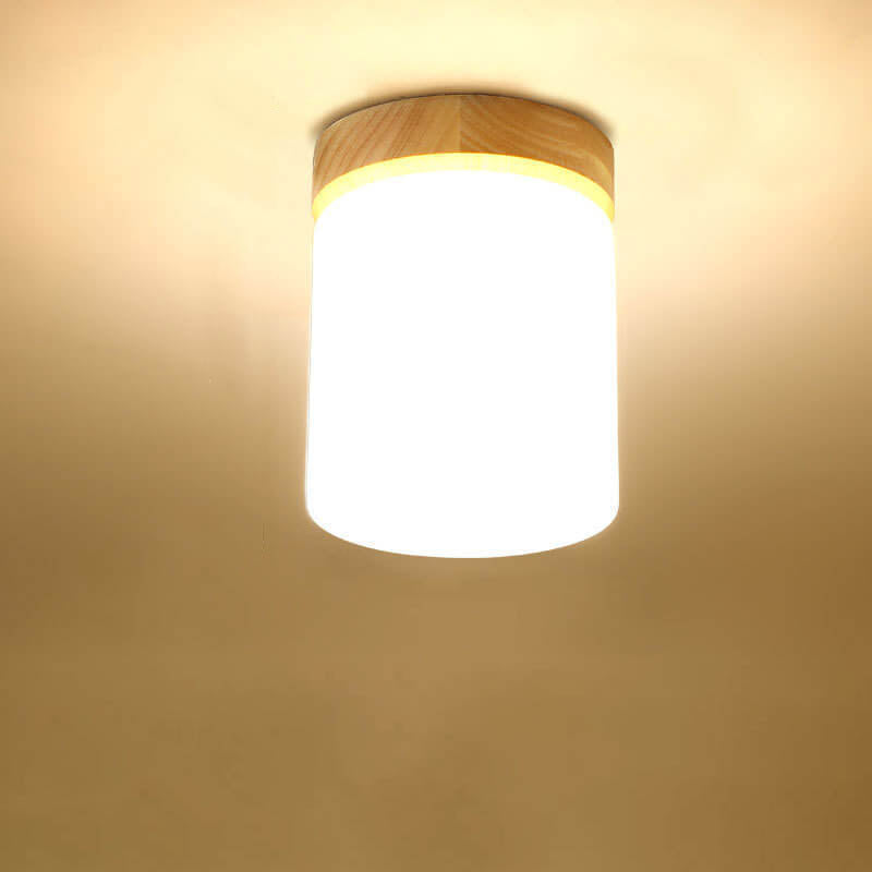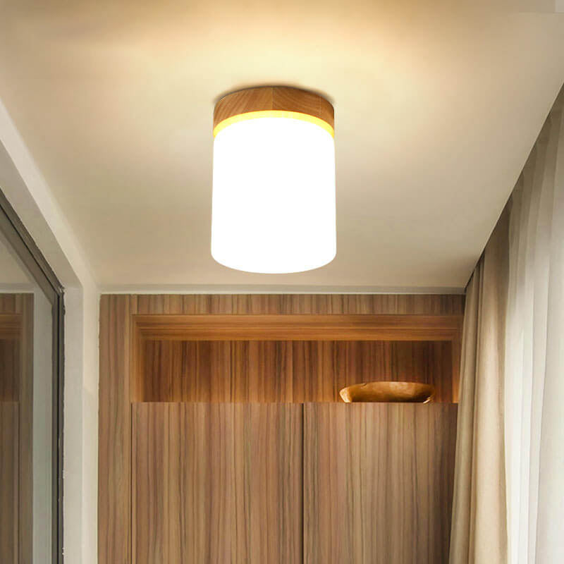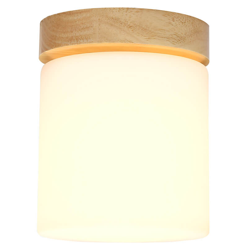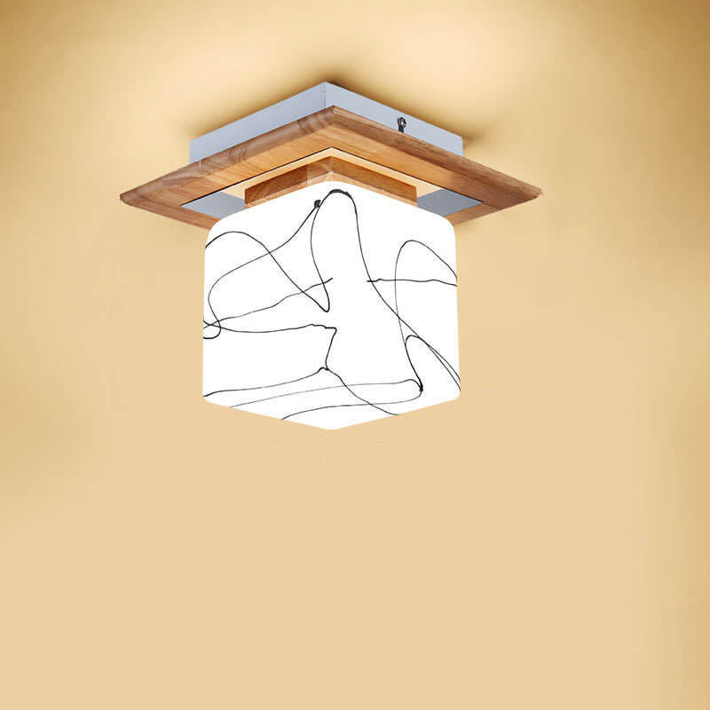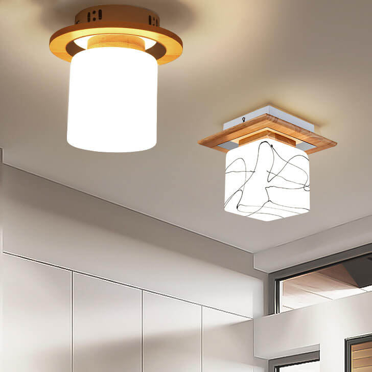 مصباح سقف دائري خشبي مربع الشكل بتصميم عصري بسيط، مزود بمصباح واحد، ومثبت بشكل شبه مسطح