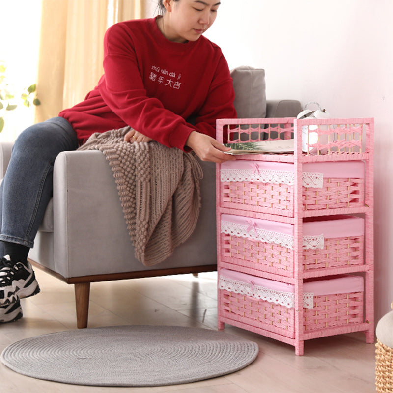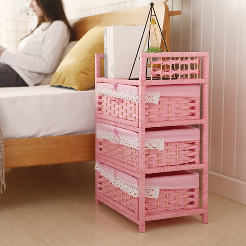 Modern Simplicity Rectangular Rattan Nightstand 3-Storage For Bedroom