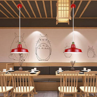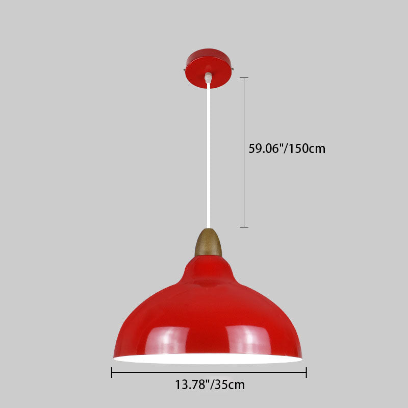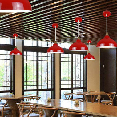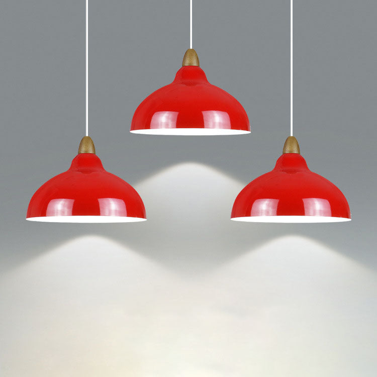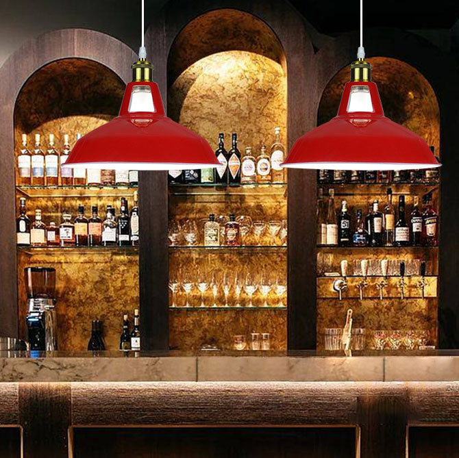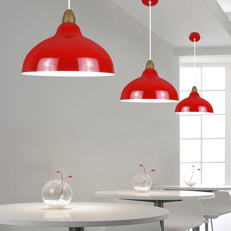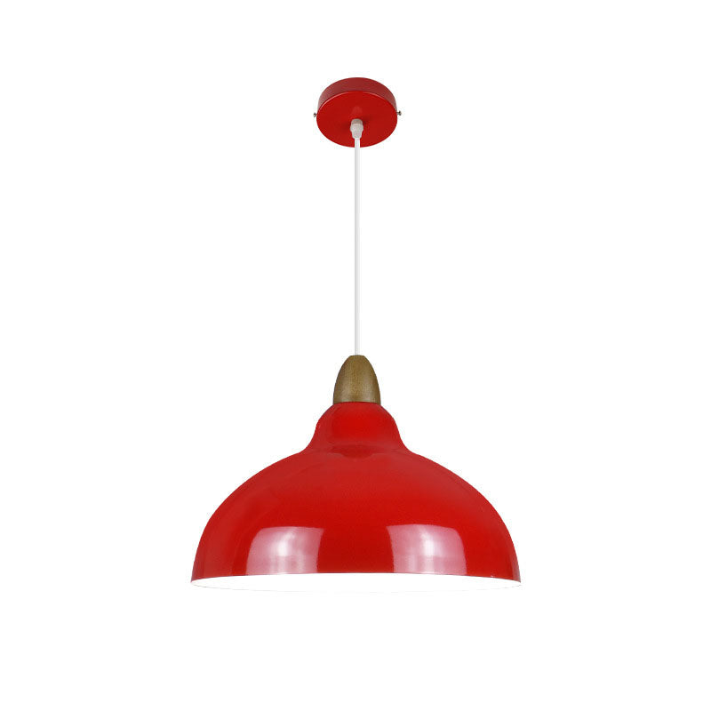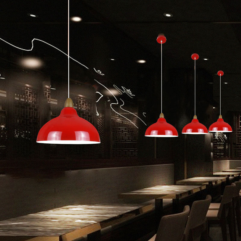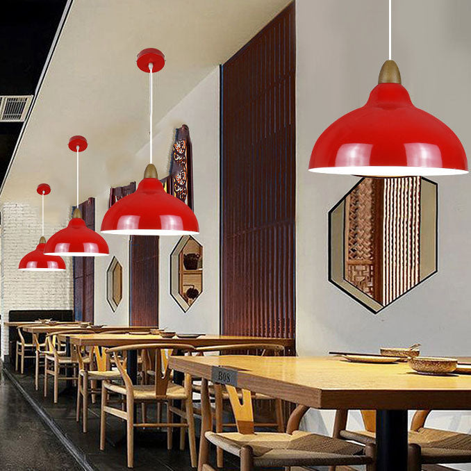 مصباح معلق بسيط حديث من الحديد الأحمر على شكل نصف دائري مزود بمصباح واحد للمطبخ