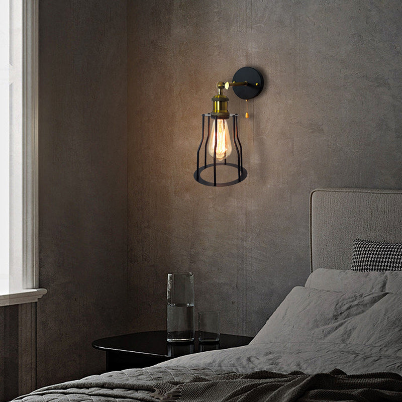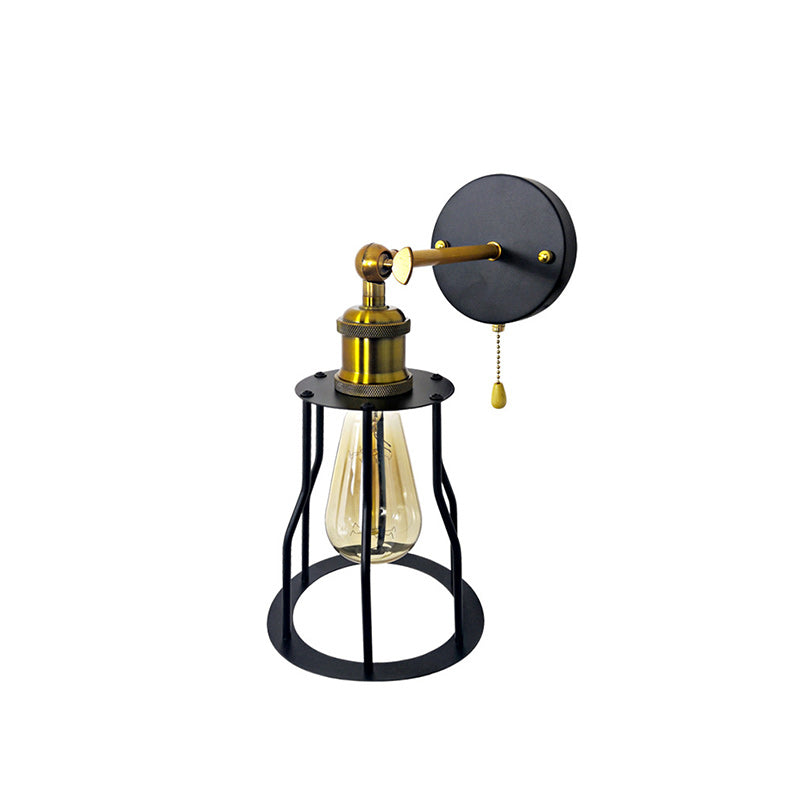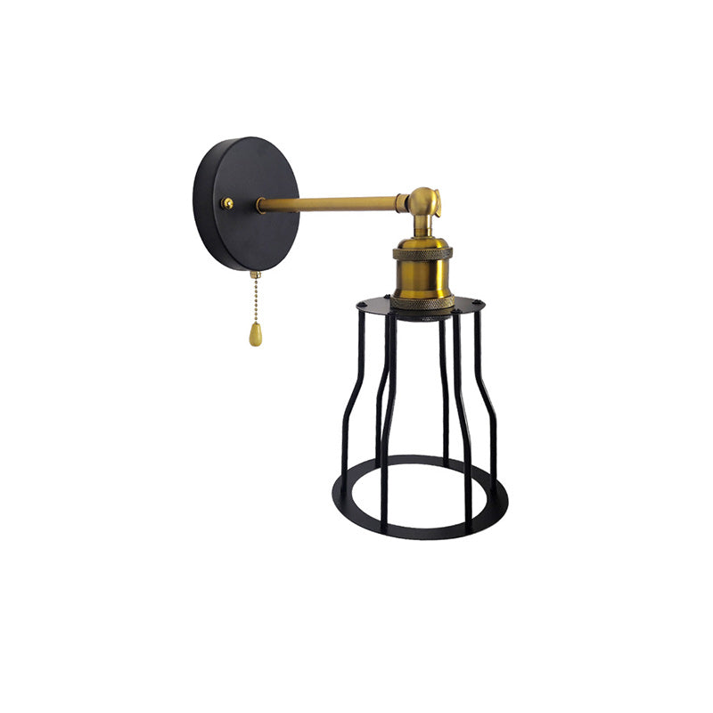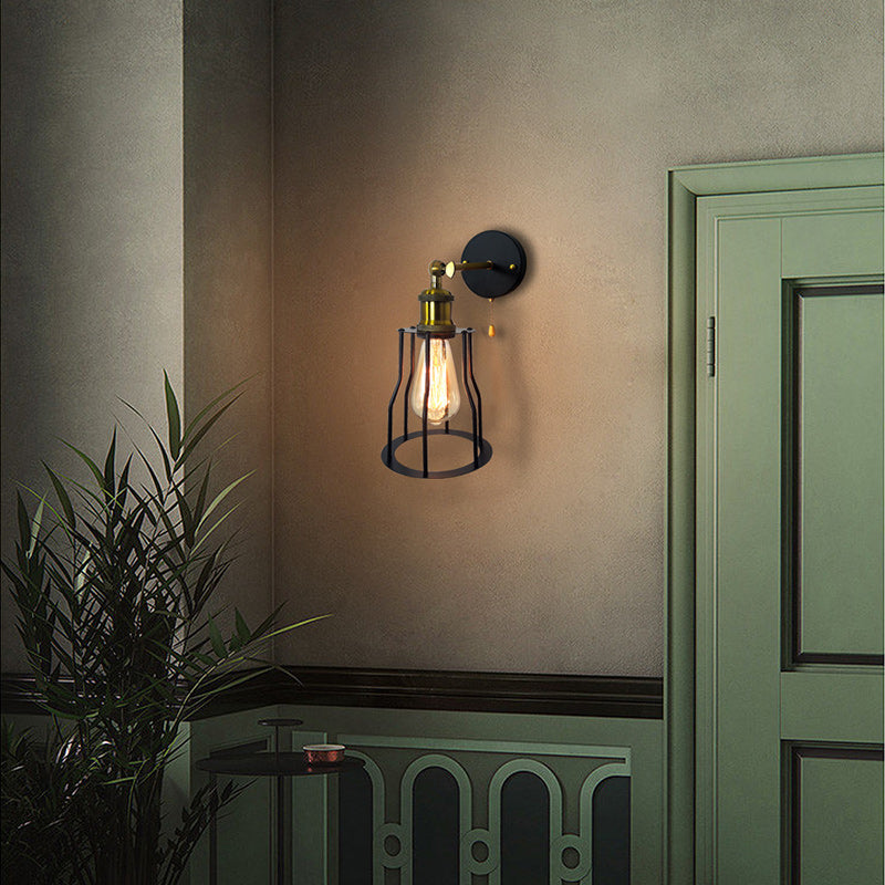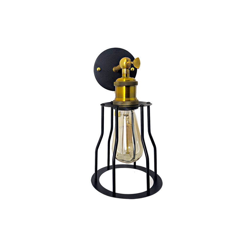 مصباح حائطي عصري بسيط مصنوع من الحديد على شكل قفص دائري مزود بمصباح واحد لغرفة المعيشة