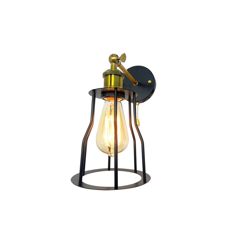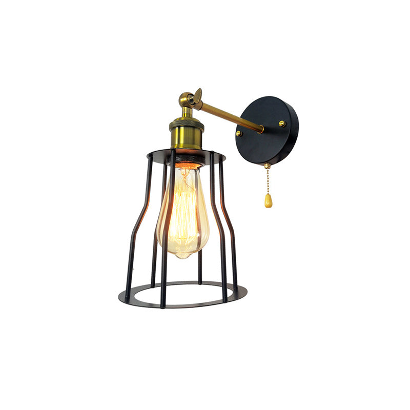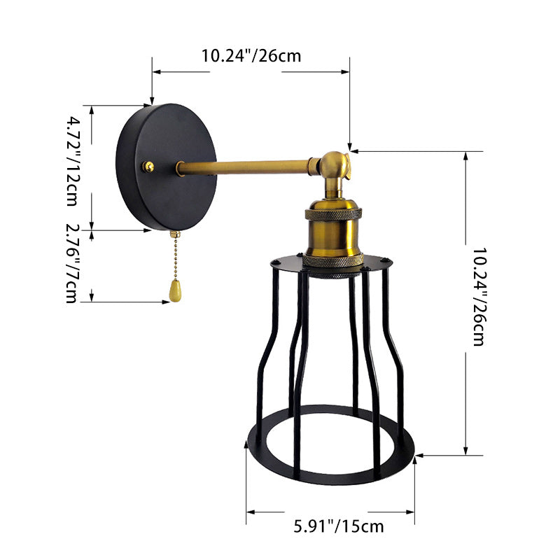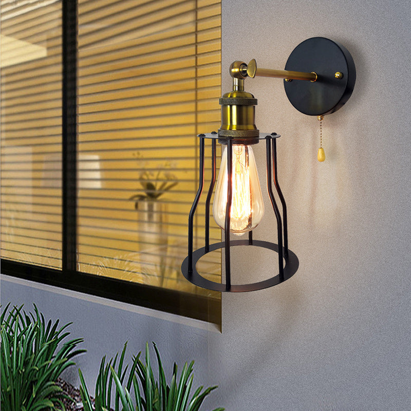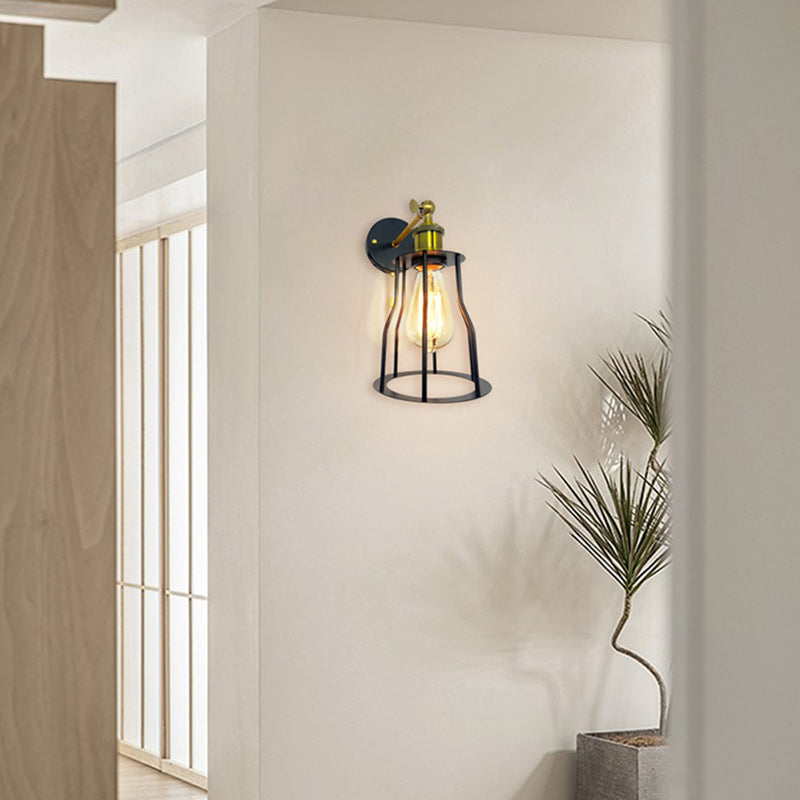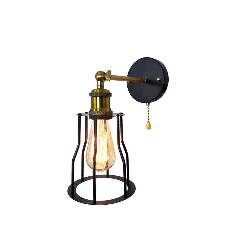 مصباح حائطي عصري بسيط مصنوع من الحديد على شكل قفص دائري مزود بمصباح واحد لغرفة المعيشة