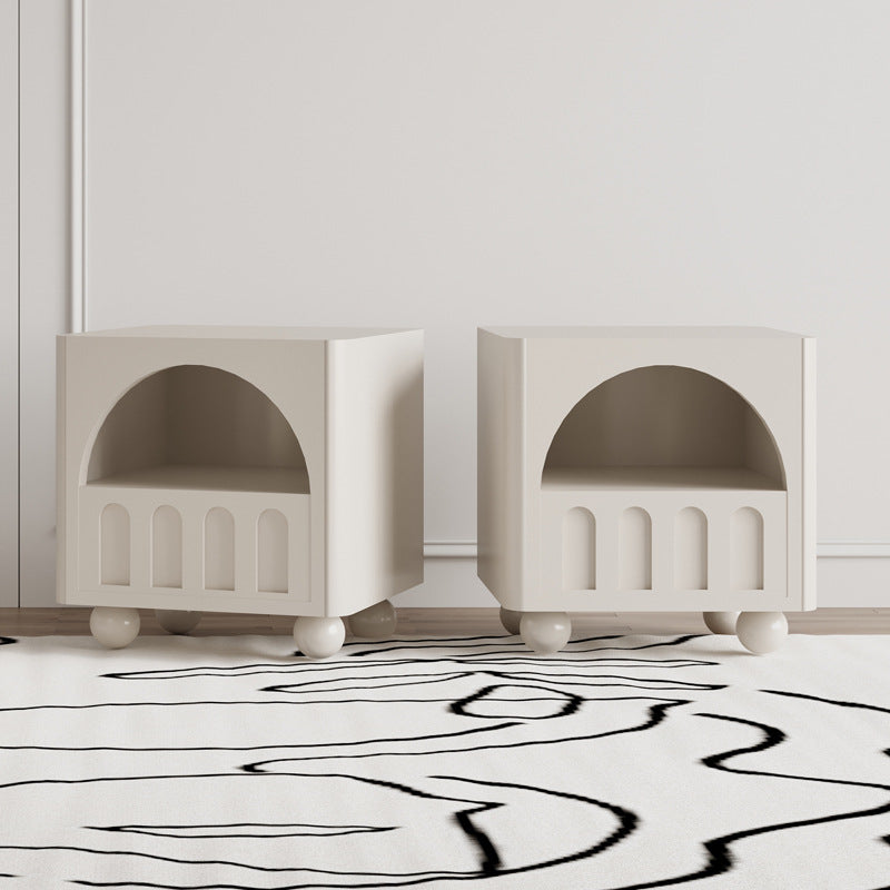Modern Simplicity Round Density Board Solid Wood Nightstand 2-Tier For Bedroom