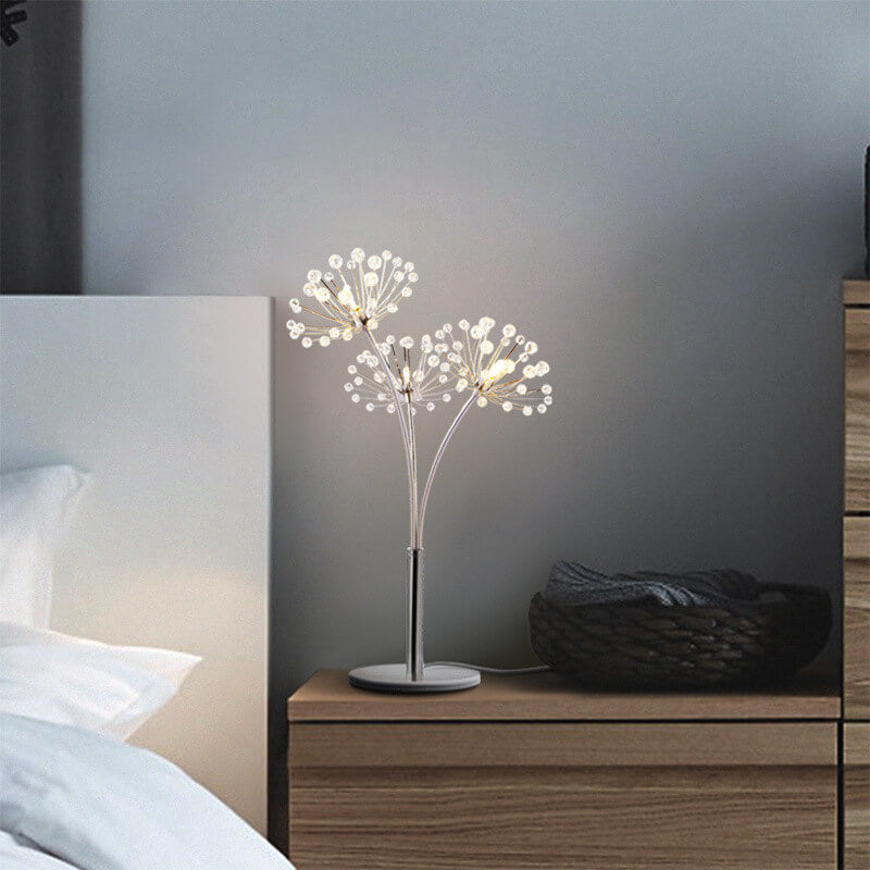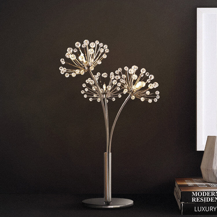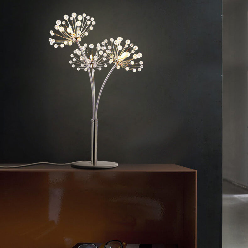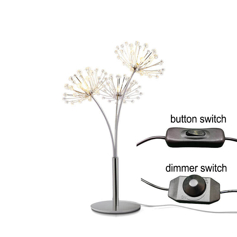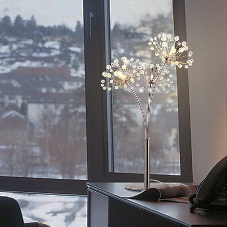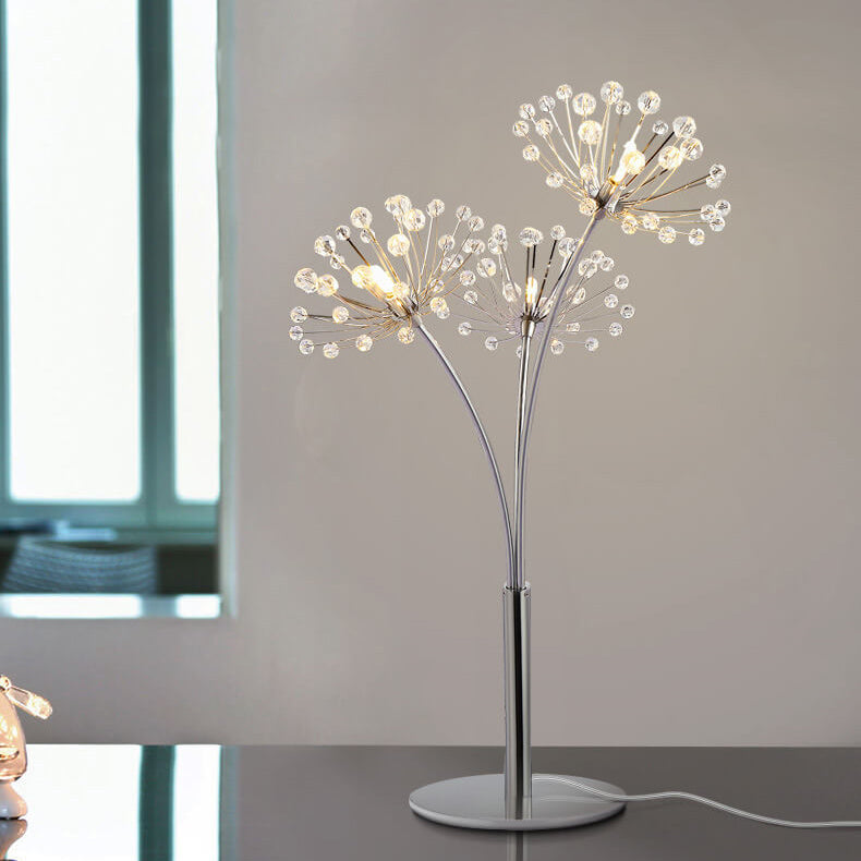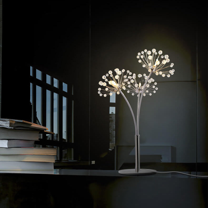 Nordic Creative Dandelion Crystal Bead Iron 3-Light Table Lamp