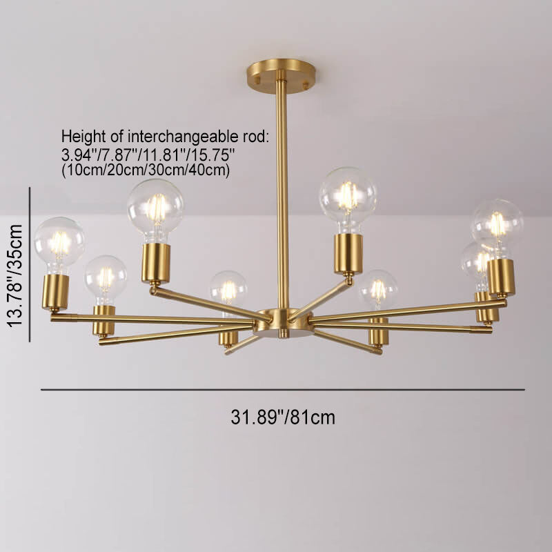 ثريا نورديك لايت الفاخرة المصنوعة من الزجاج والنحاس بتصميم فرعي، 3/4/6/8/10 مصابيح