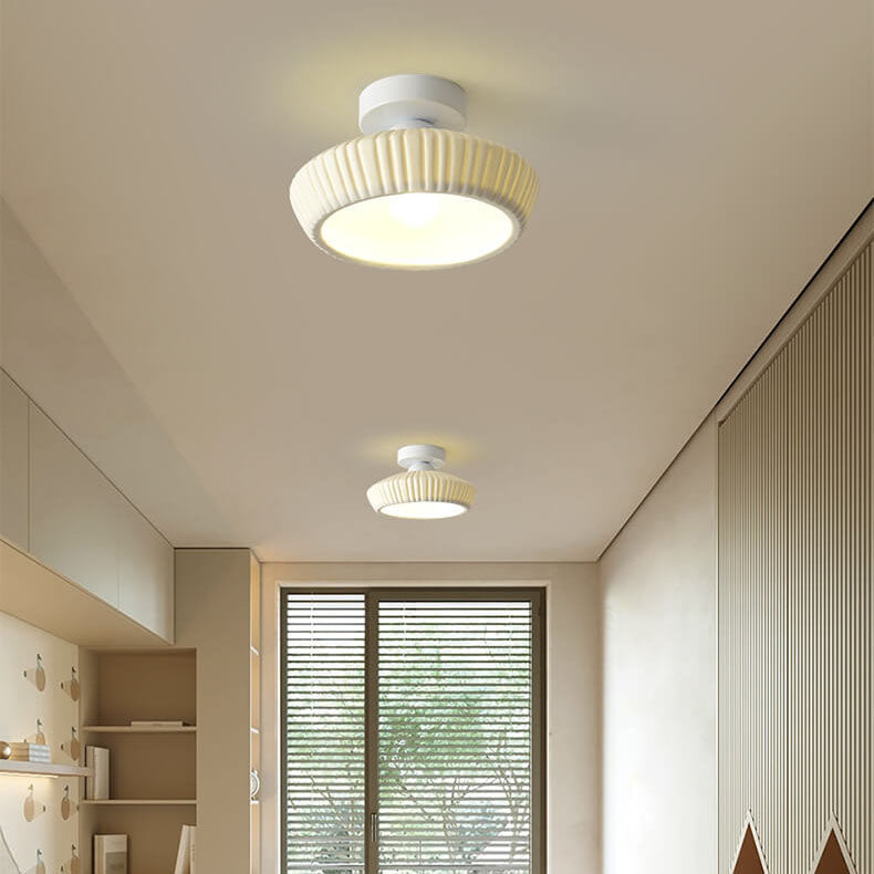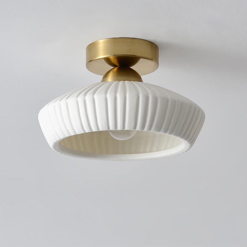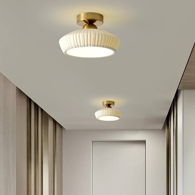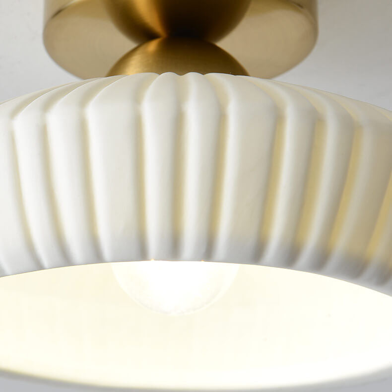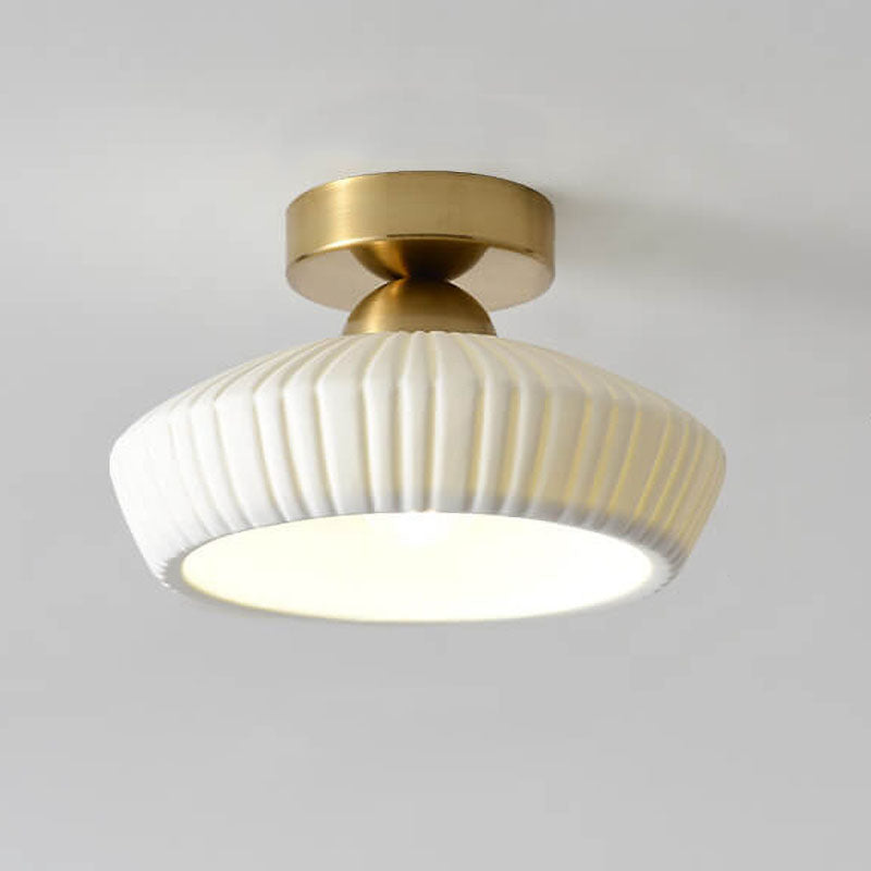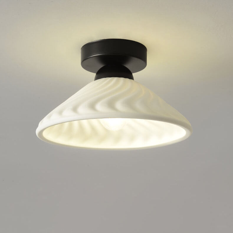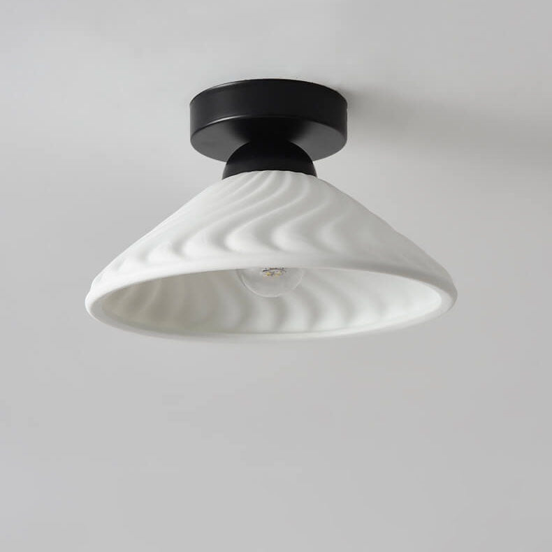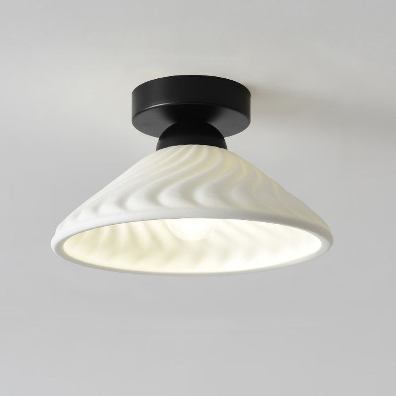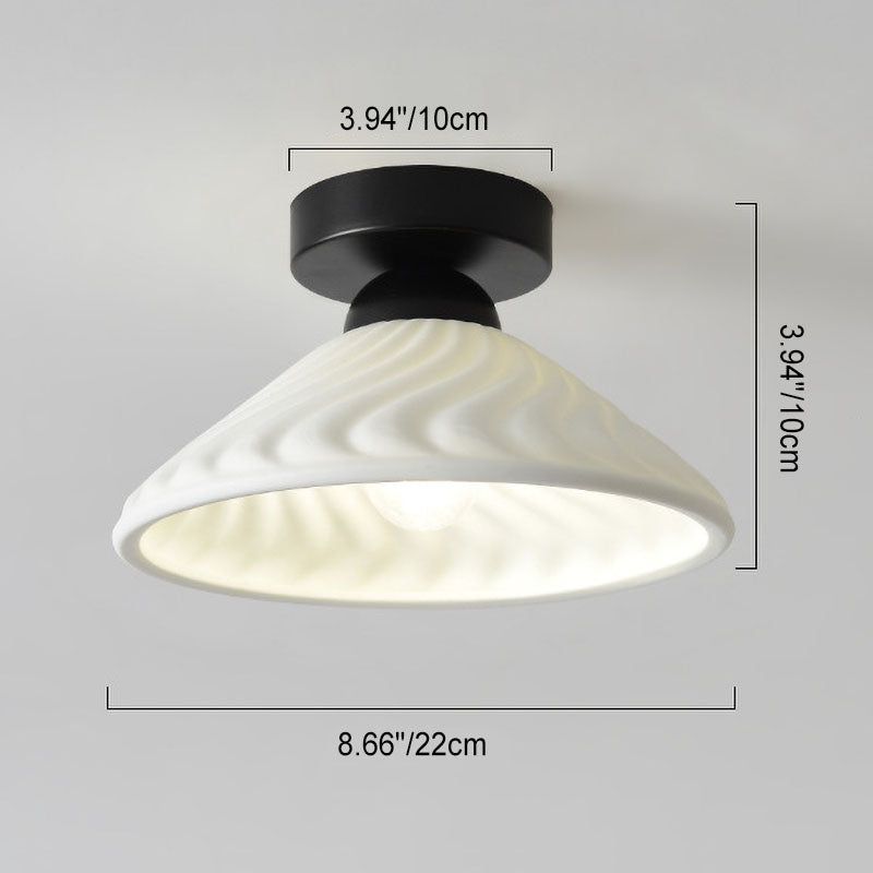 مصباح سقف مخروطي دائري من السيراميك بتصميم بسيط على الطراز الاسكندنافي، مزود بإضاءة واحدة وتركيب شبه مسطح