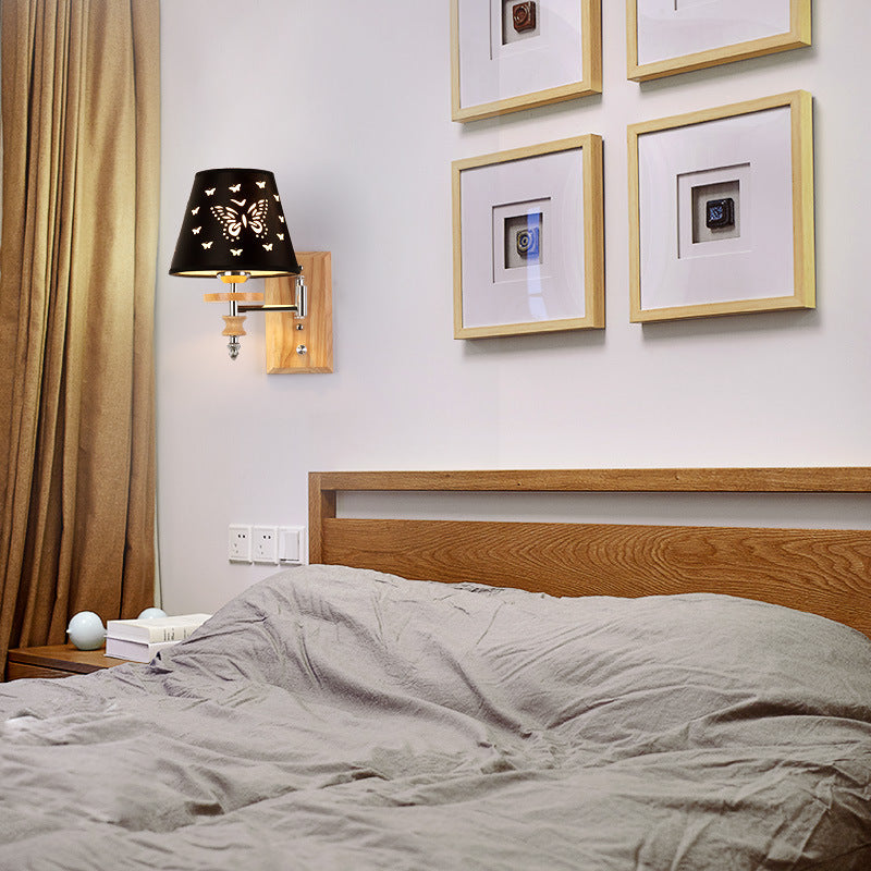 مصباح حائطي بتصميم مخروطي على شكل فراشة من القماش الأسود بتصميم بسيط إسكندنافي، نصف ضوء