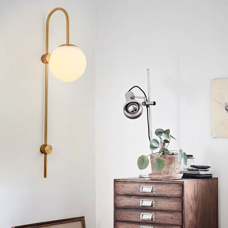 مصباح حائطي طويل ذو عمود دائري زجاجي بسيط على الطراز الاسكندنافي، مزود بمصباح واحد