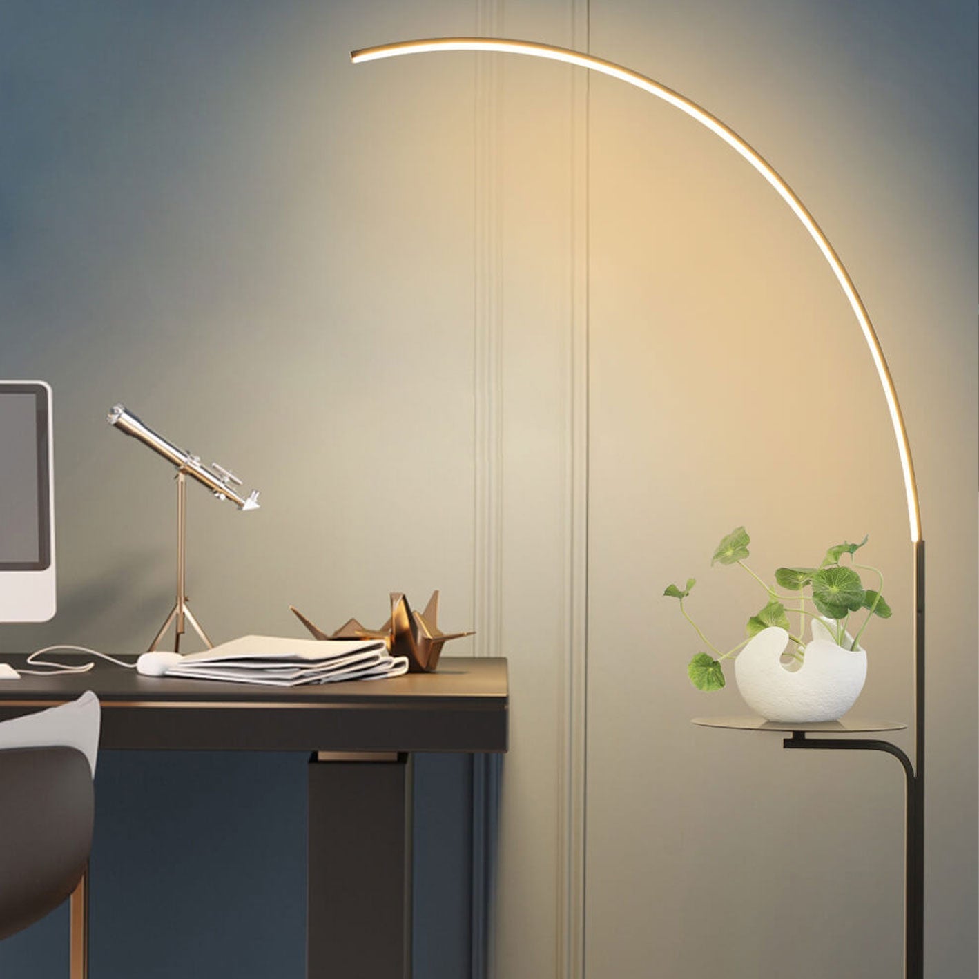Nordic Minimalist Line Bending with Tray LED Standing Floor Lamp