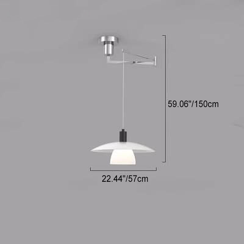 مصباح معلق حديث من الألومنيوم على شكل قبة وذراع هزازة مزود بمصباح واحد