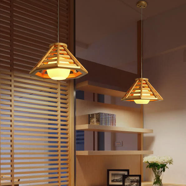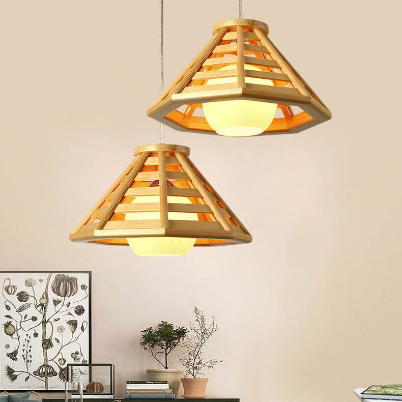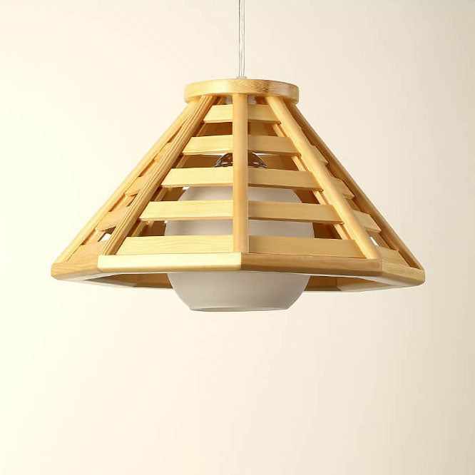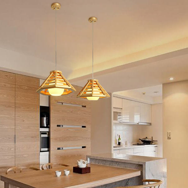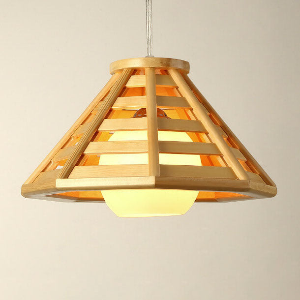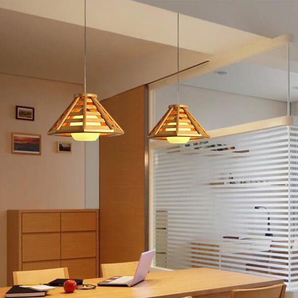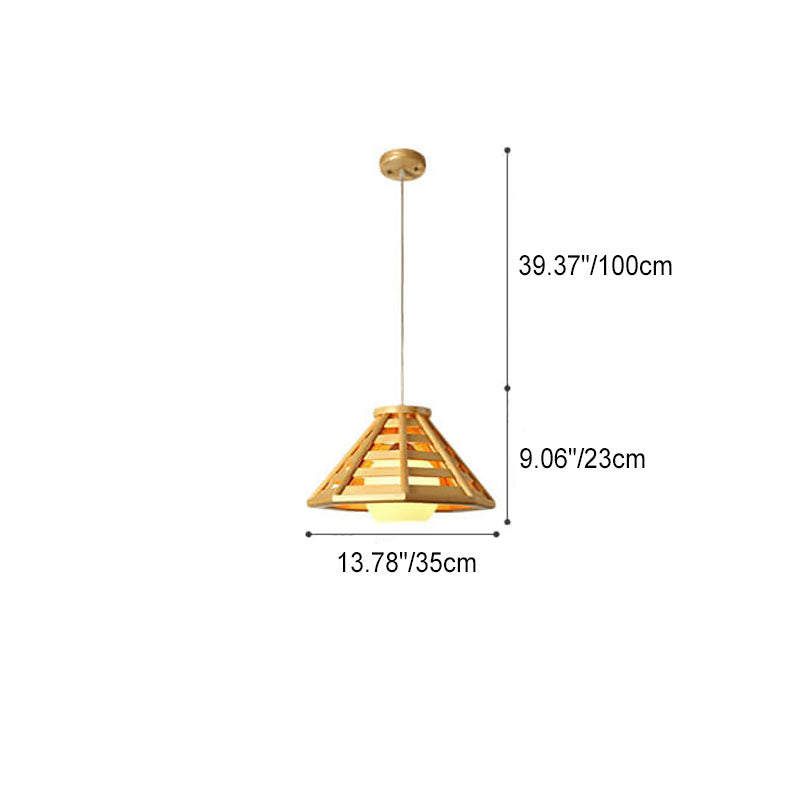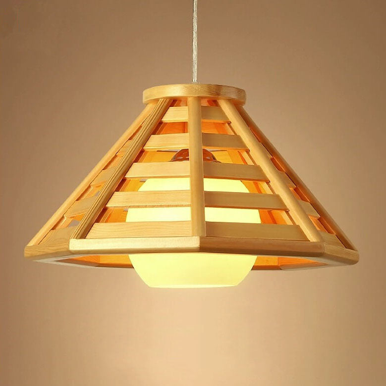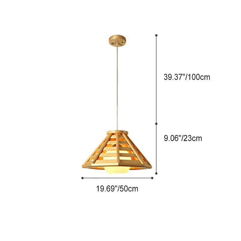 مصباح معلق مخروطي مضفر من الخشب الصلب بتصميم حديث إسكندنافي، مزود بمصباح واحد