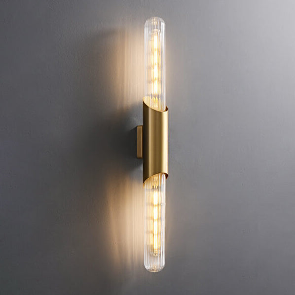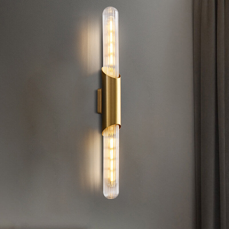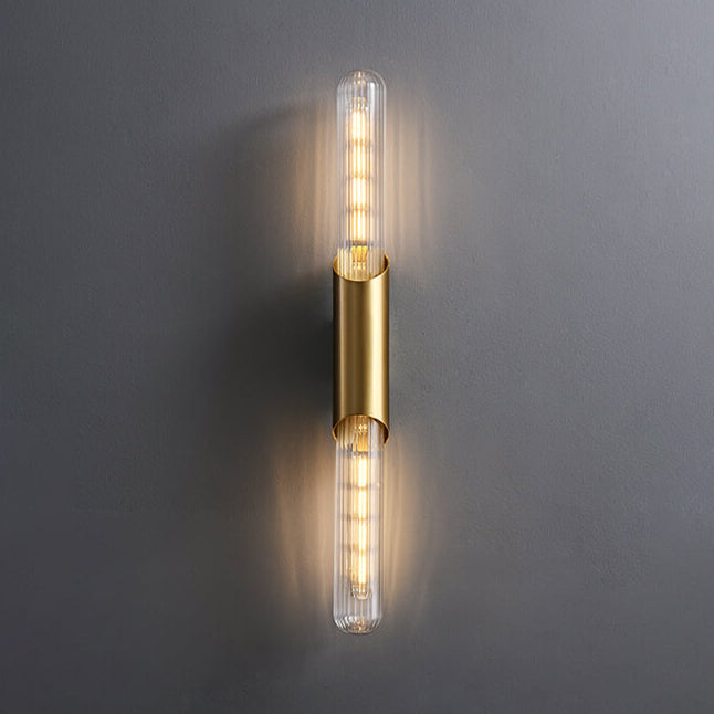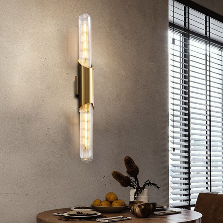مصباح حائط طويل من النحاس بتصميم ريترو إسكندنافي مع مصباحين