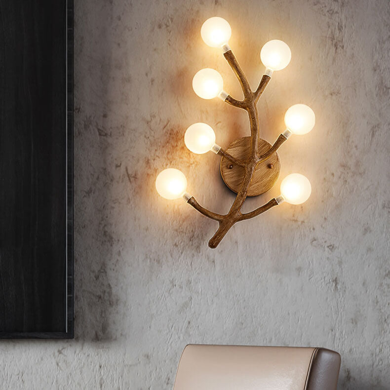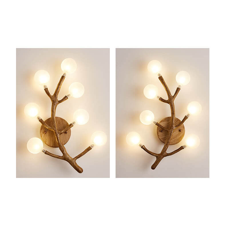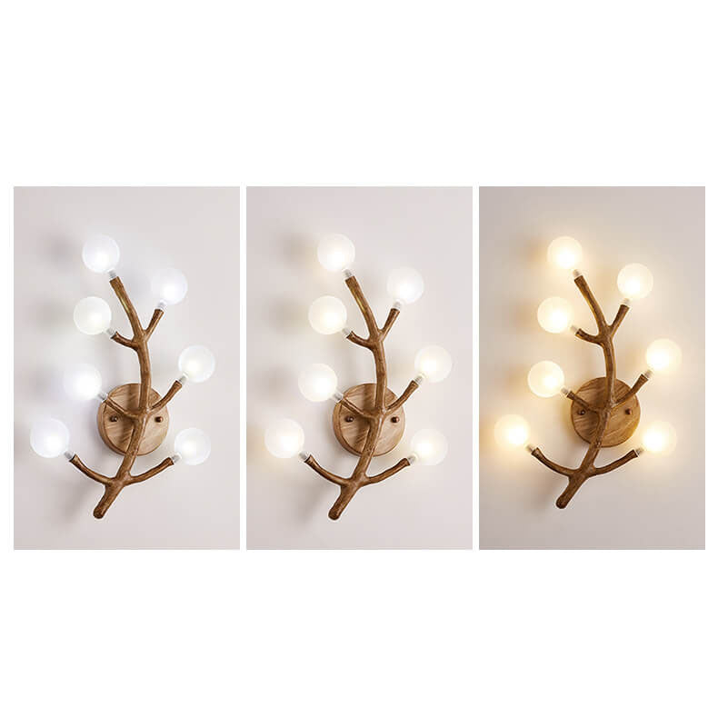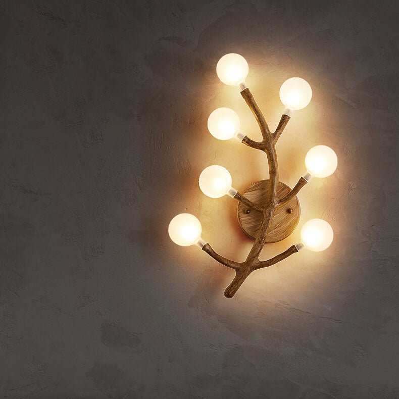 مصباح حائطي زجاجي على شكل شوكة شجرة من الراتنج بتصميم ريترو إسكندنافي، مزود بسبعة مصابيح