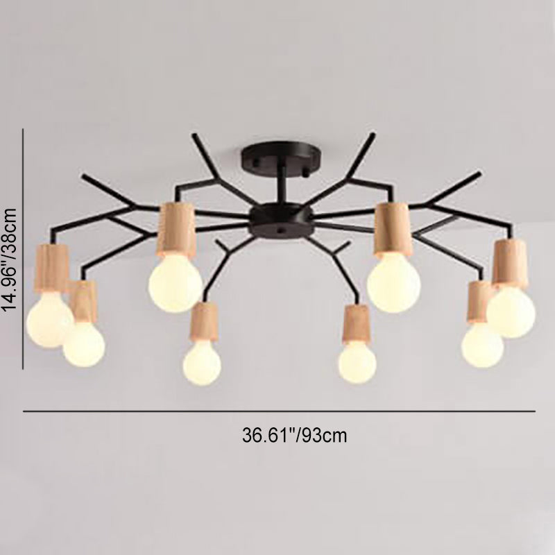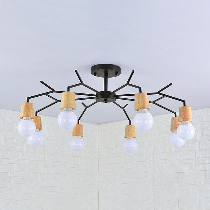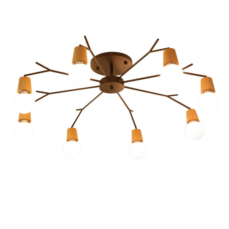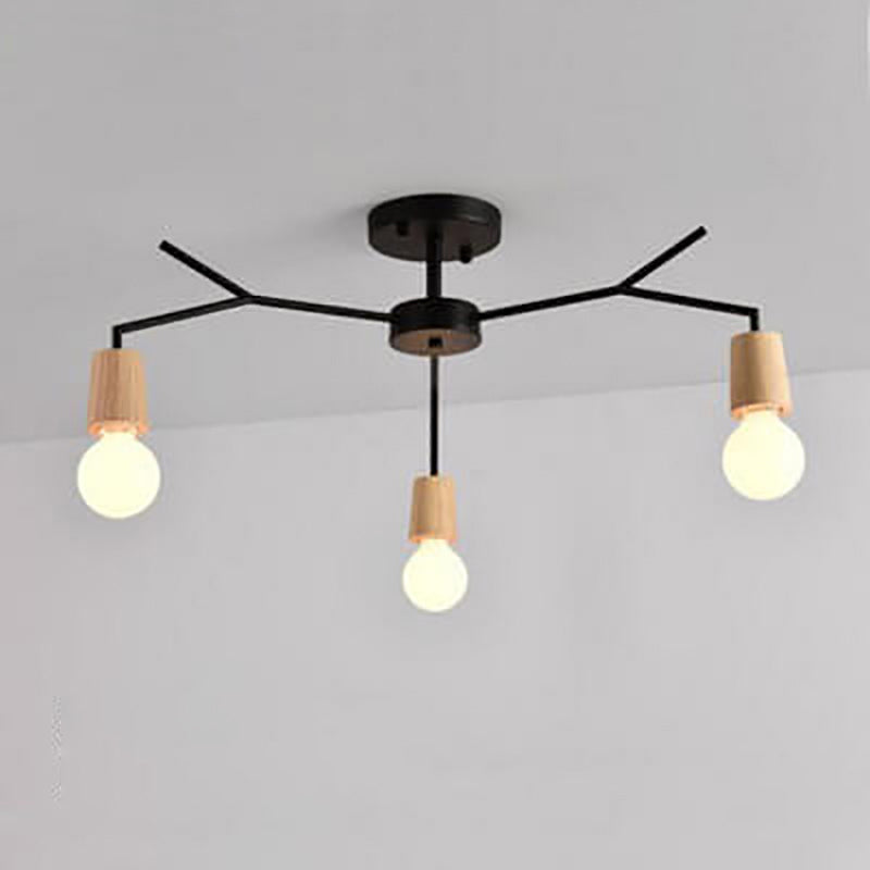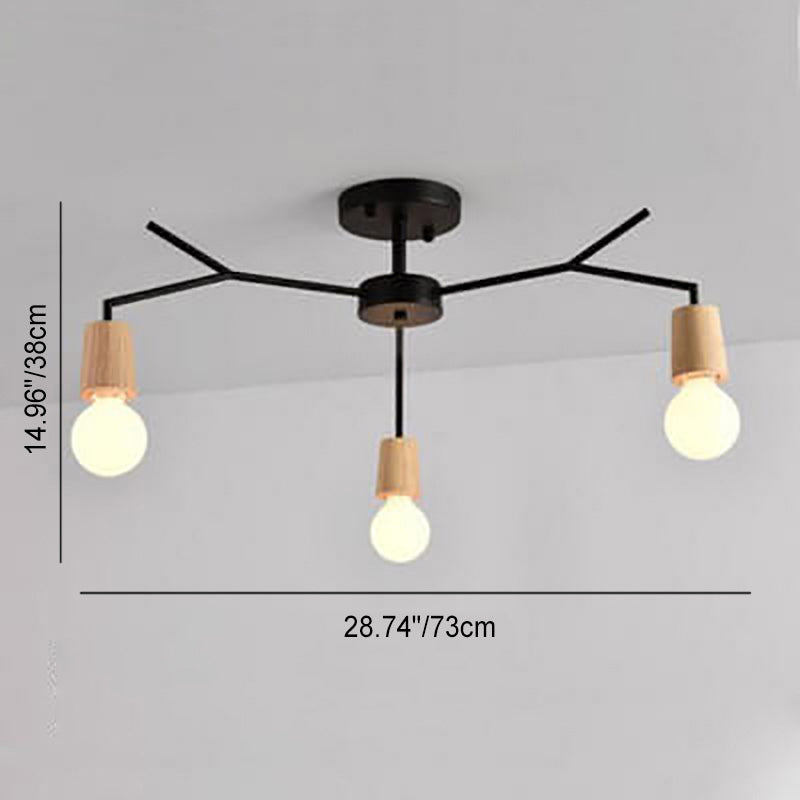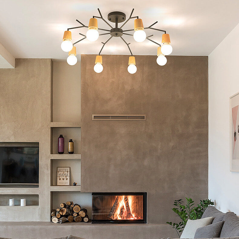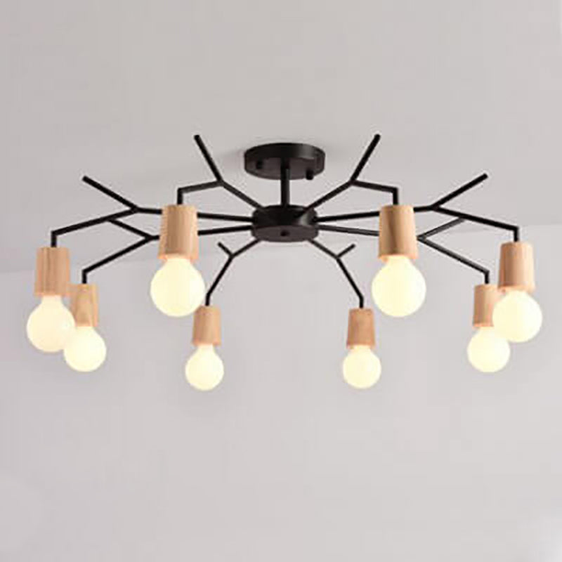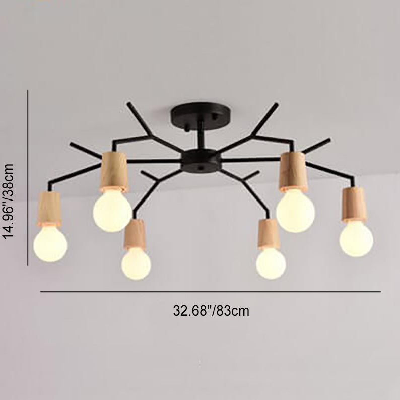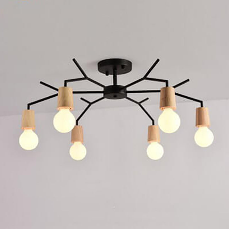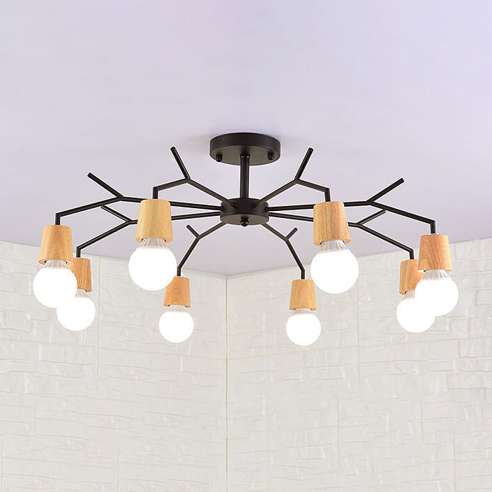 ثريا خشبية بسيطة من الحديد على شكل شجرة من الطراز الاسكندنافي، مزودة بـ 3/6/8 مصابيح