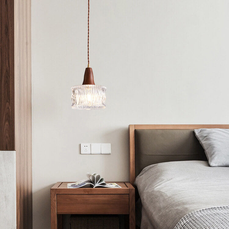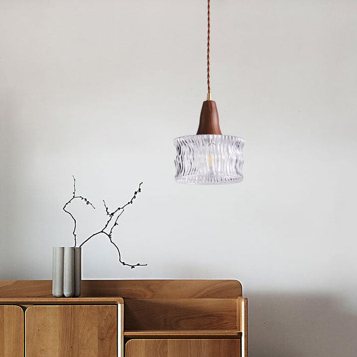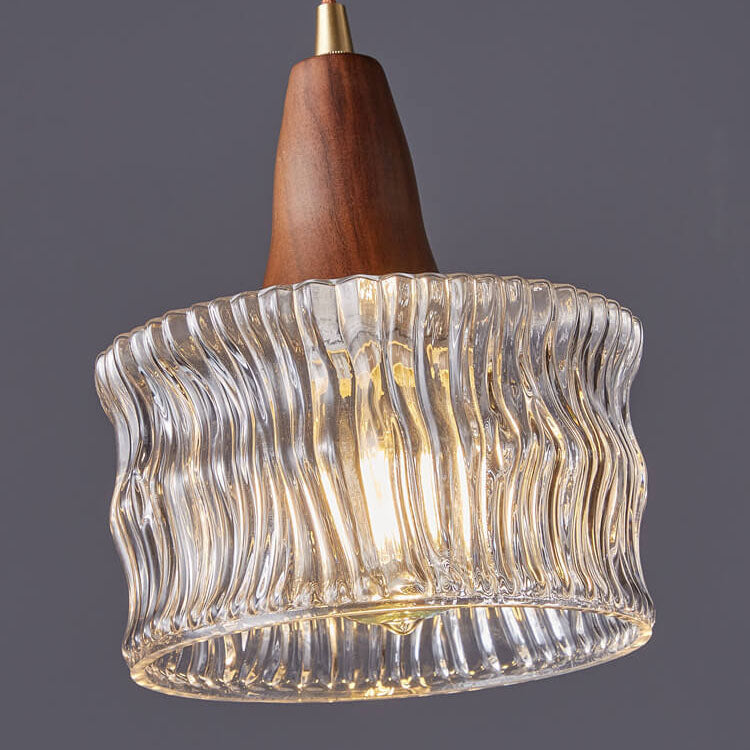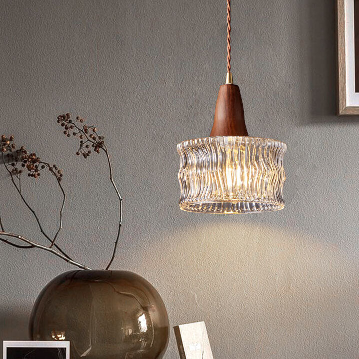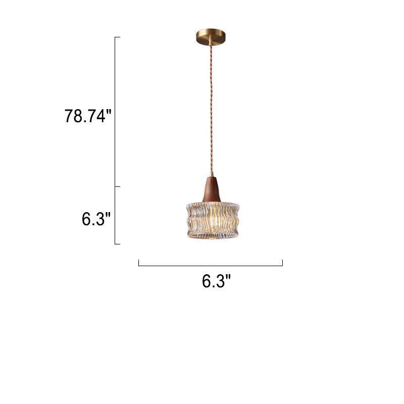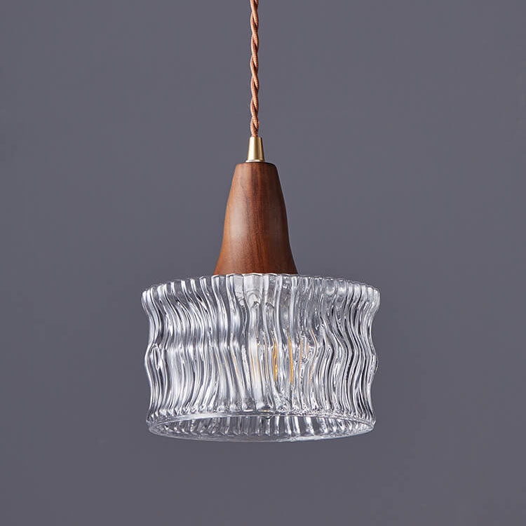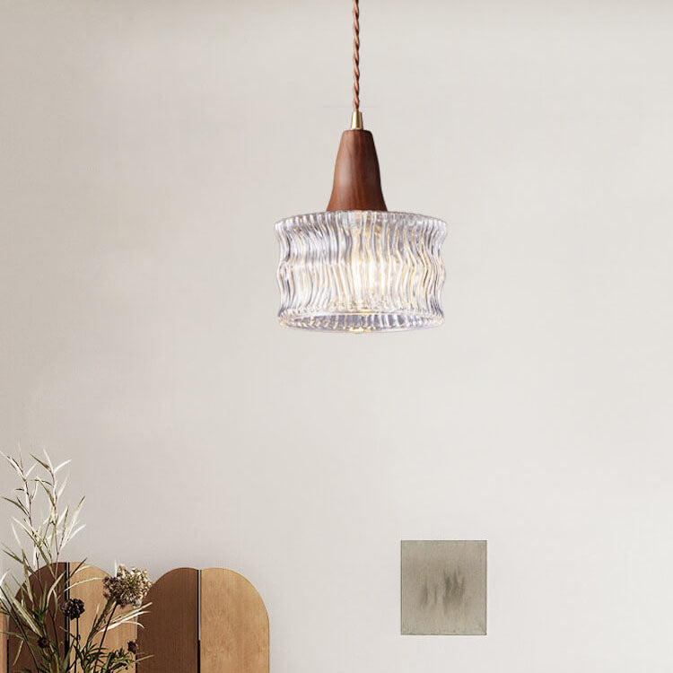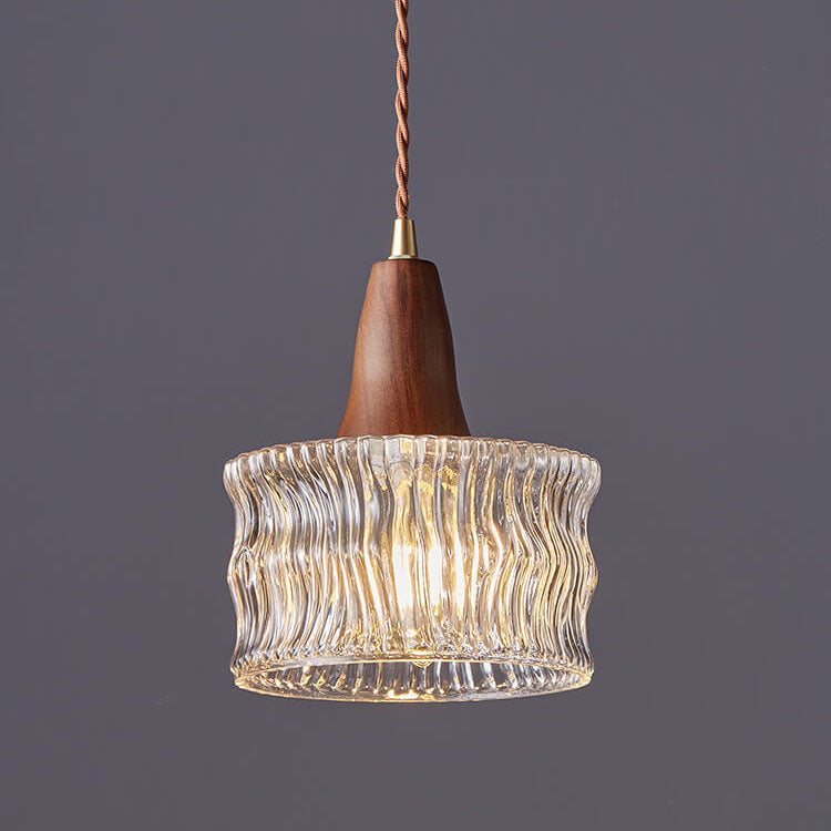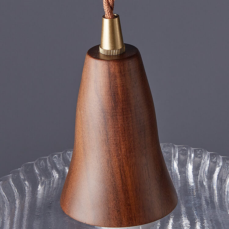 مصباح معلق من النحاس الأصفر من جرة زجاجية عتيقة من نورديك، مصنوع من خشب الجوز