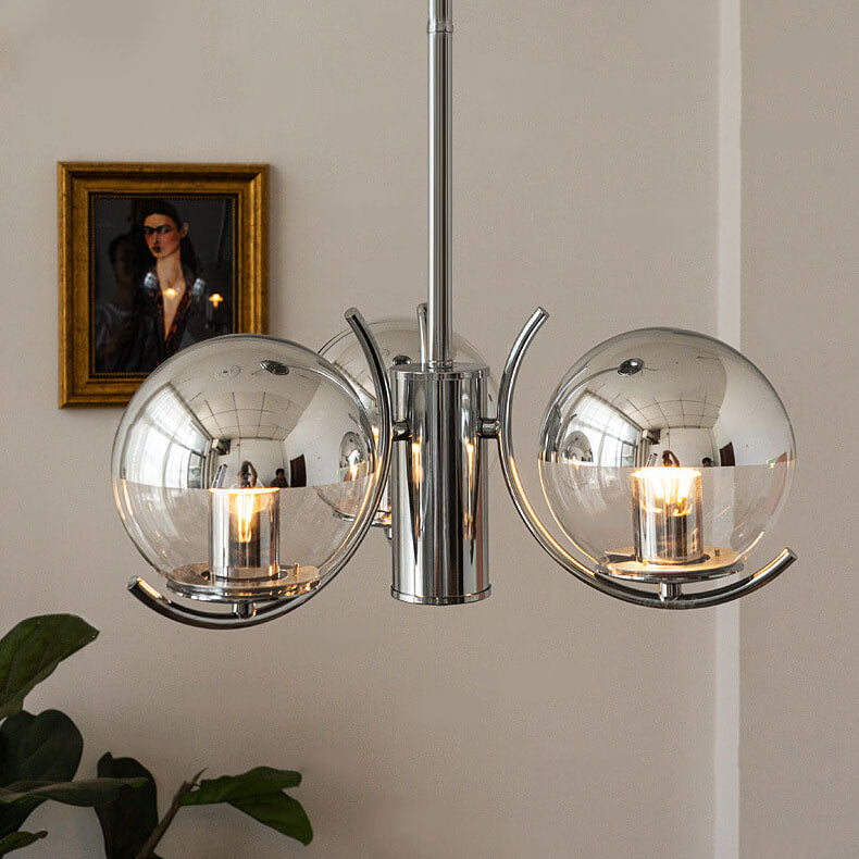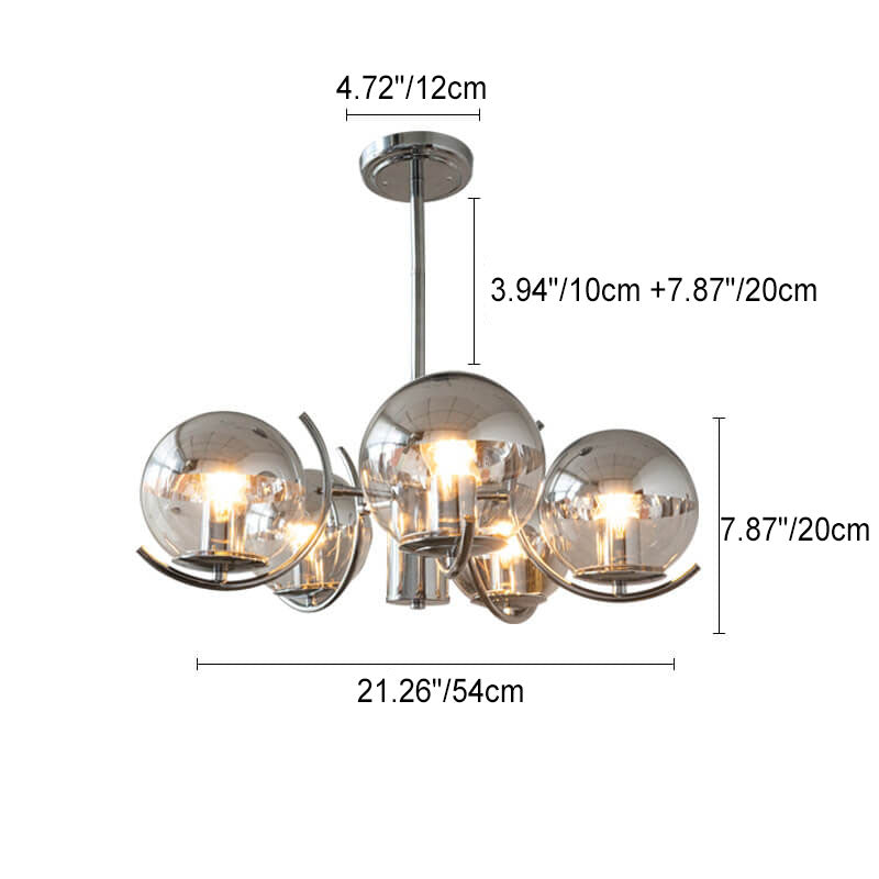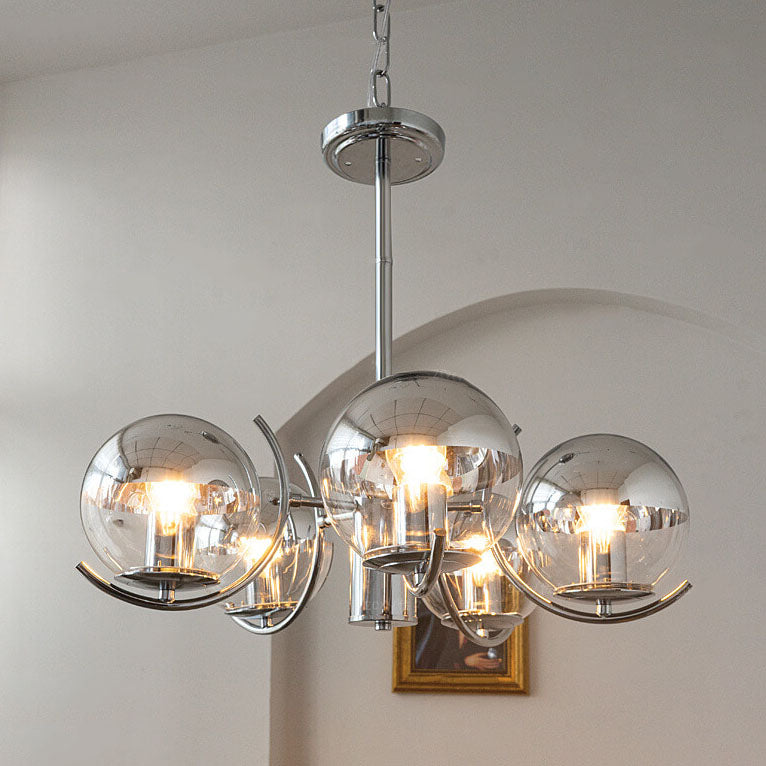 ثريا زجاجية دائرية عتيقة من نورديك مصنوعة من الحديد المطلي بالكهرباء، 3/4/5 مصابيح