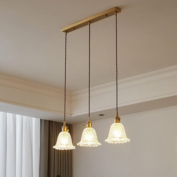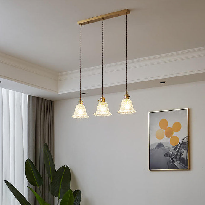 ثريا جزيرة زجاجية مزخرفة على شكل زهور عتيقة من نورديك، بإضاءة 1/3
