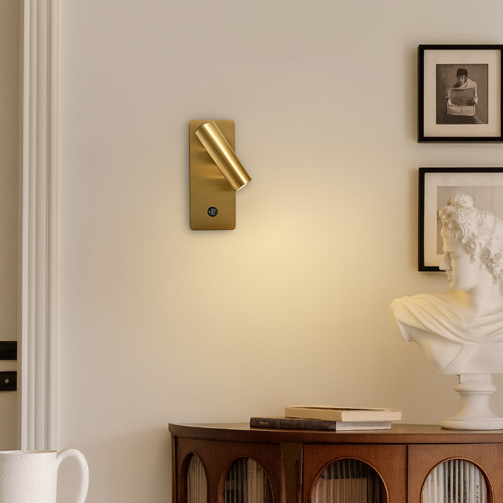 مصباح حائط LED مستطيل الشكل قابل للدوران مصنوع من الألومنيوم المتين - مصباح حائط LED صناعي مثبت على الحائط مع مفتاح لغرفة المعيشة