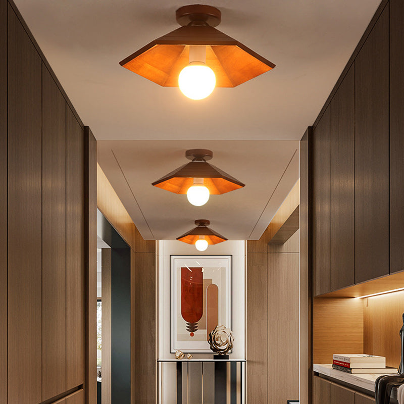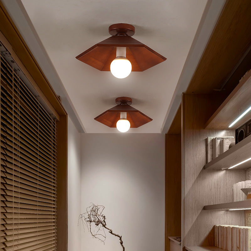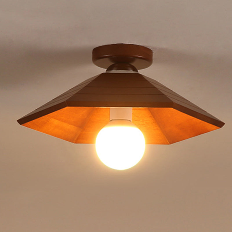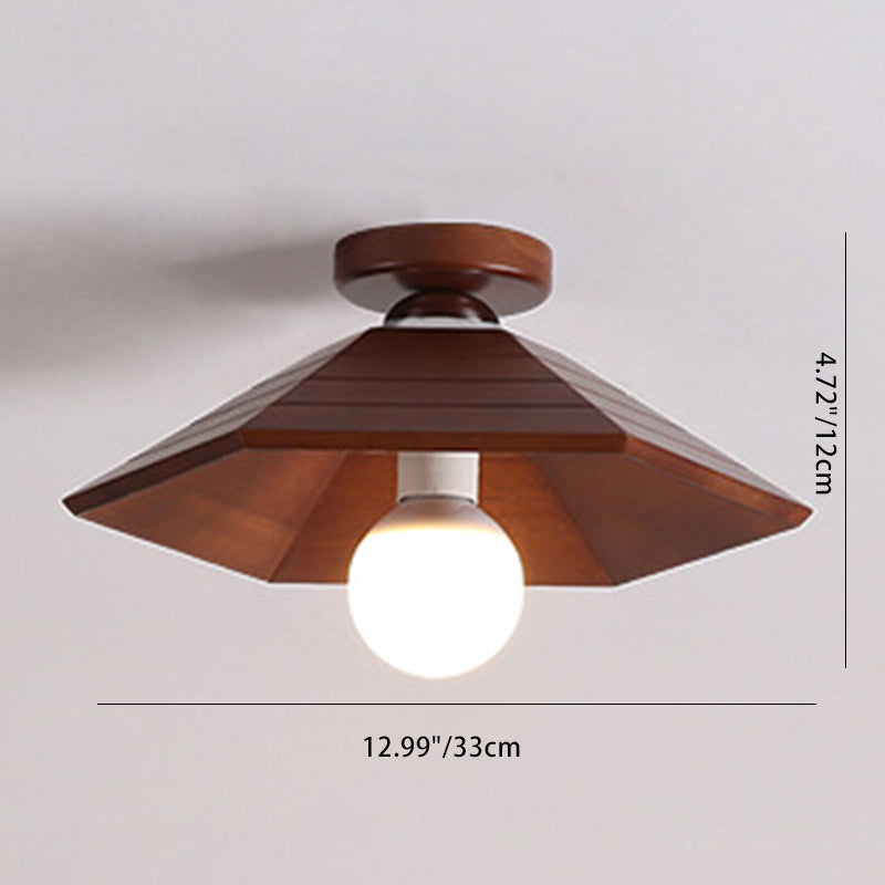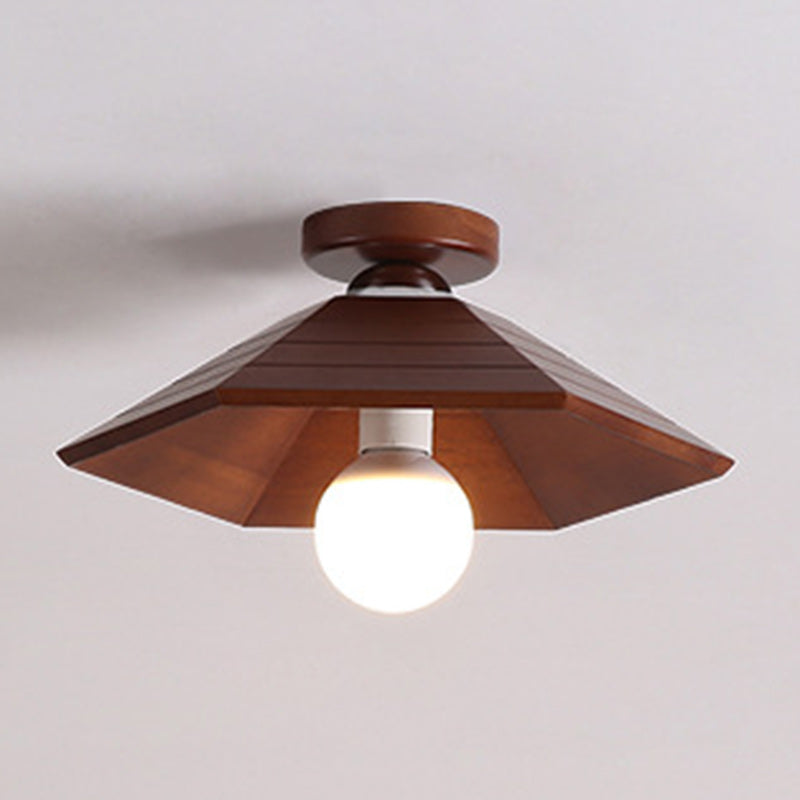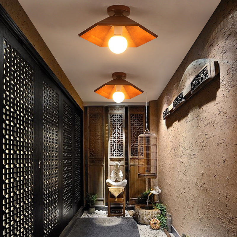 مصباح سقف خشبي سداسي صيني تقليدي، مزود بإضاءة واحدة، شبه مدمج، لغرفة الطعام