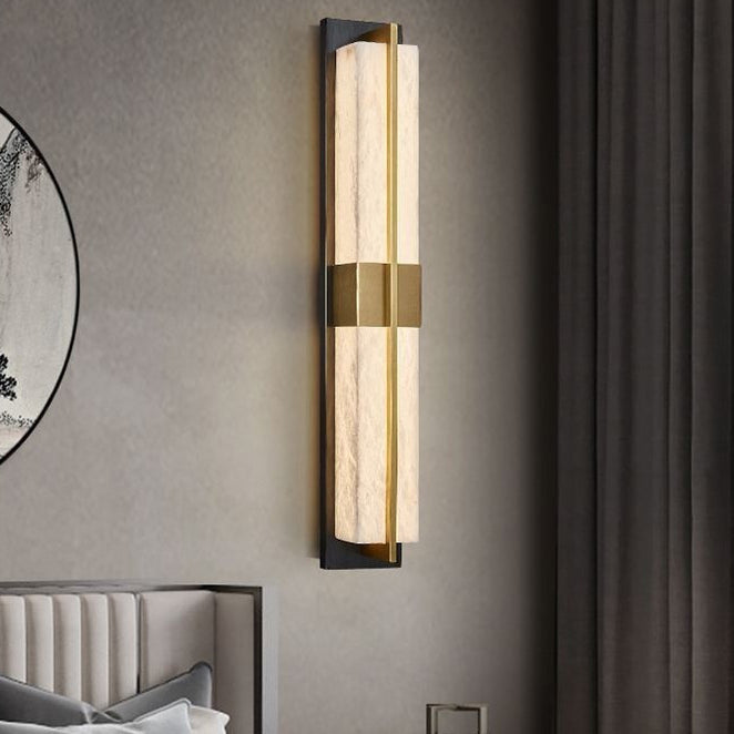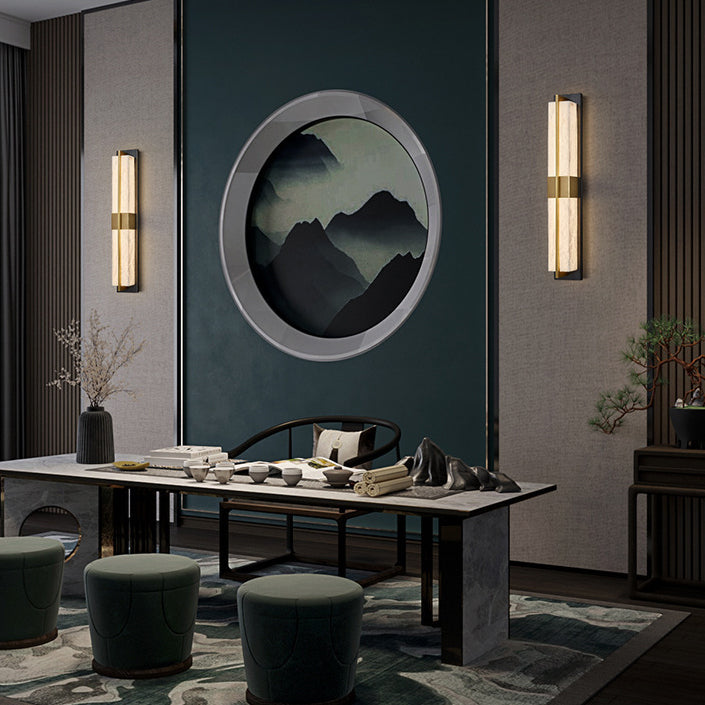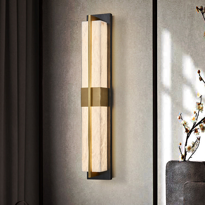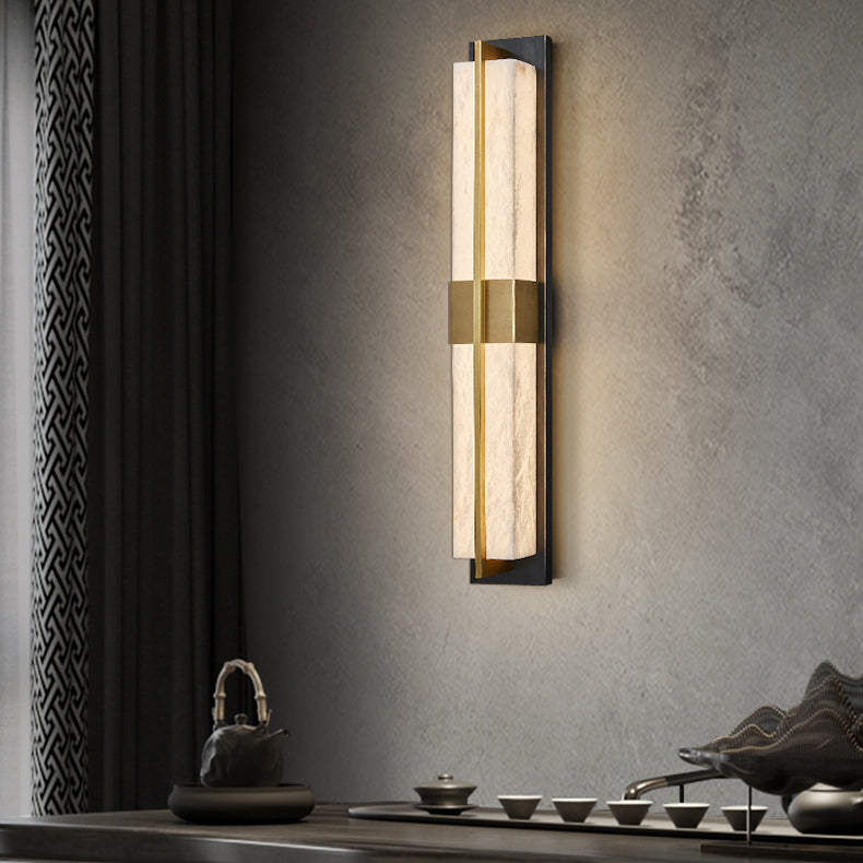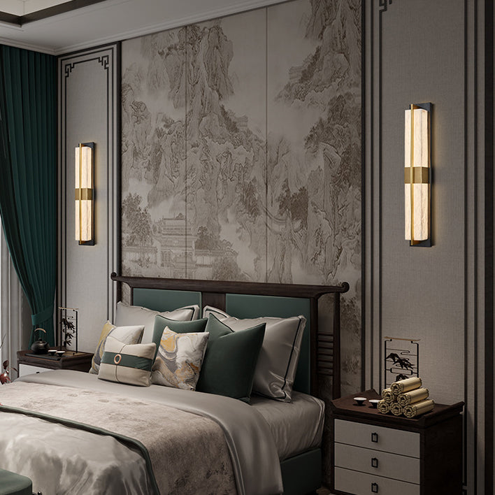مصباح حائط LED مستطيل الشكل من الرخام والنحاس الصيني التقليدي بجانب السرير