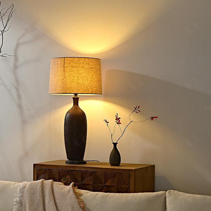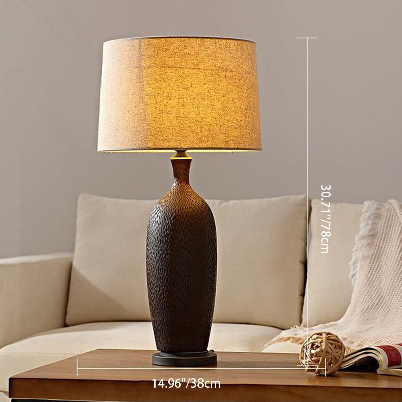 Traditional Chinese Oval Bottle Cylinder Ceramic Fabric 1-Light Table Lamp For Living Room