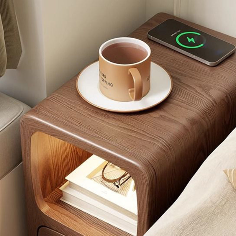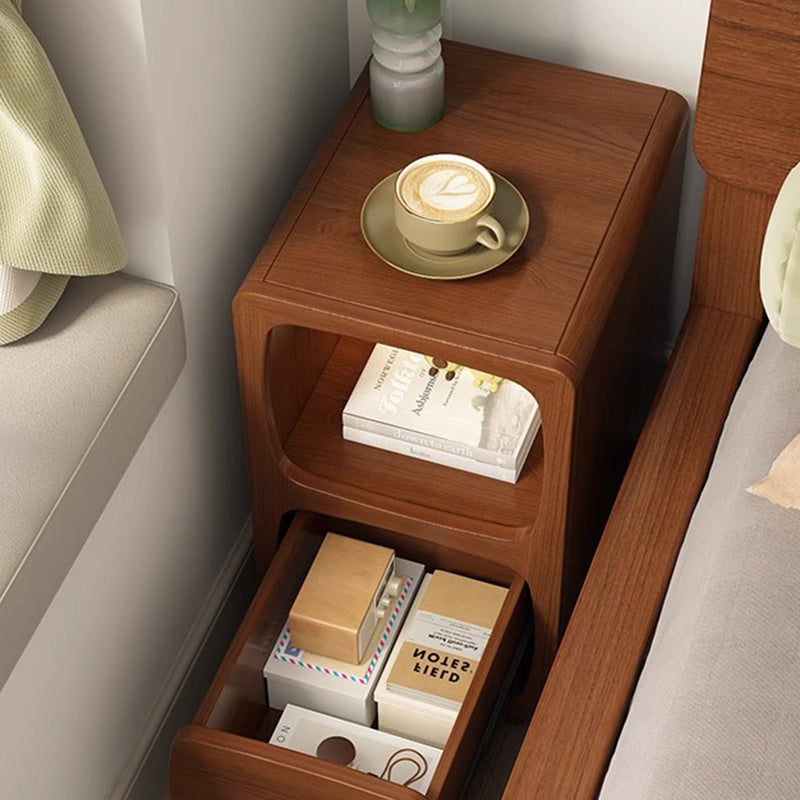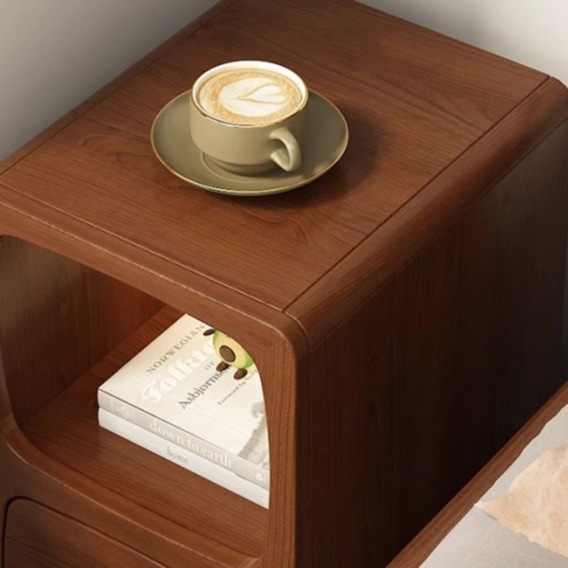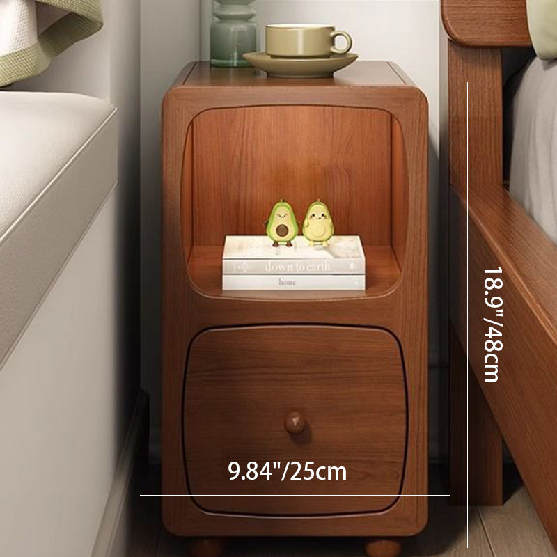 Traditional Chinese Rectangular Square Solid Wood Nightstand 1/2 Drawer For Bedroom